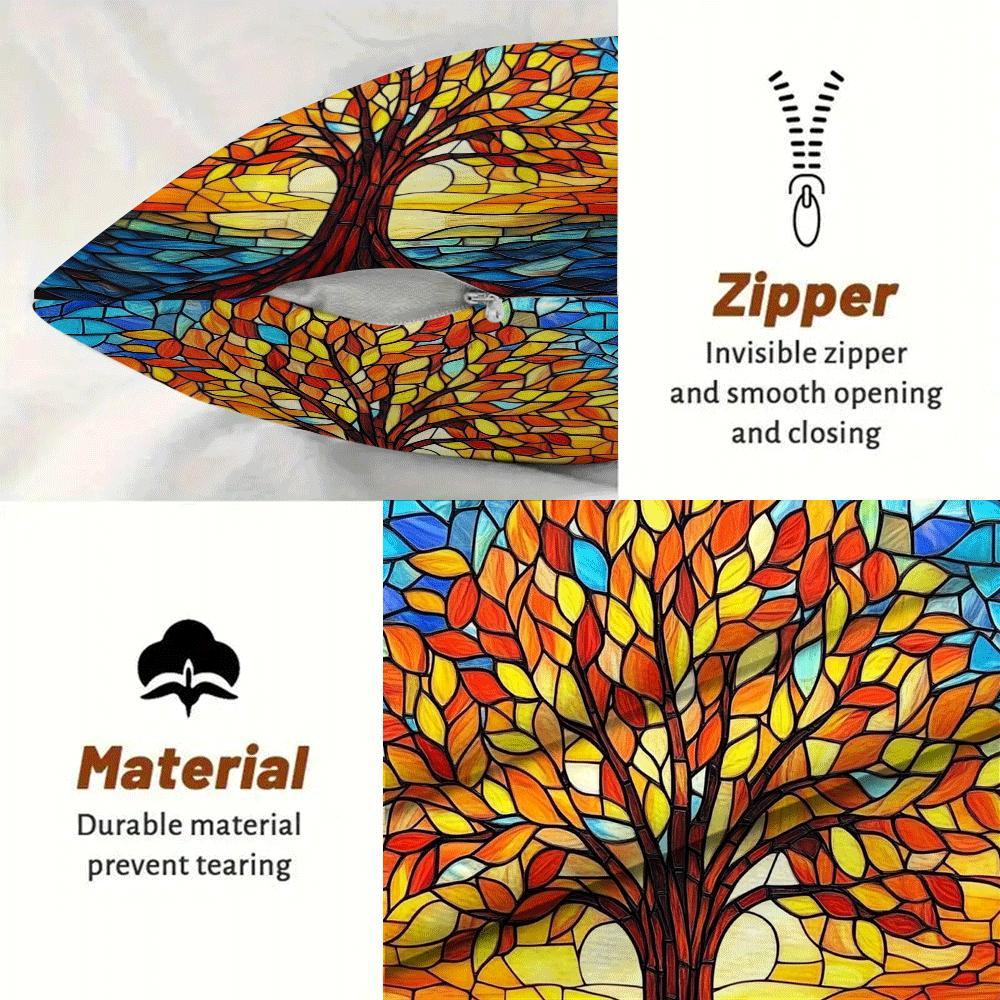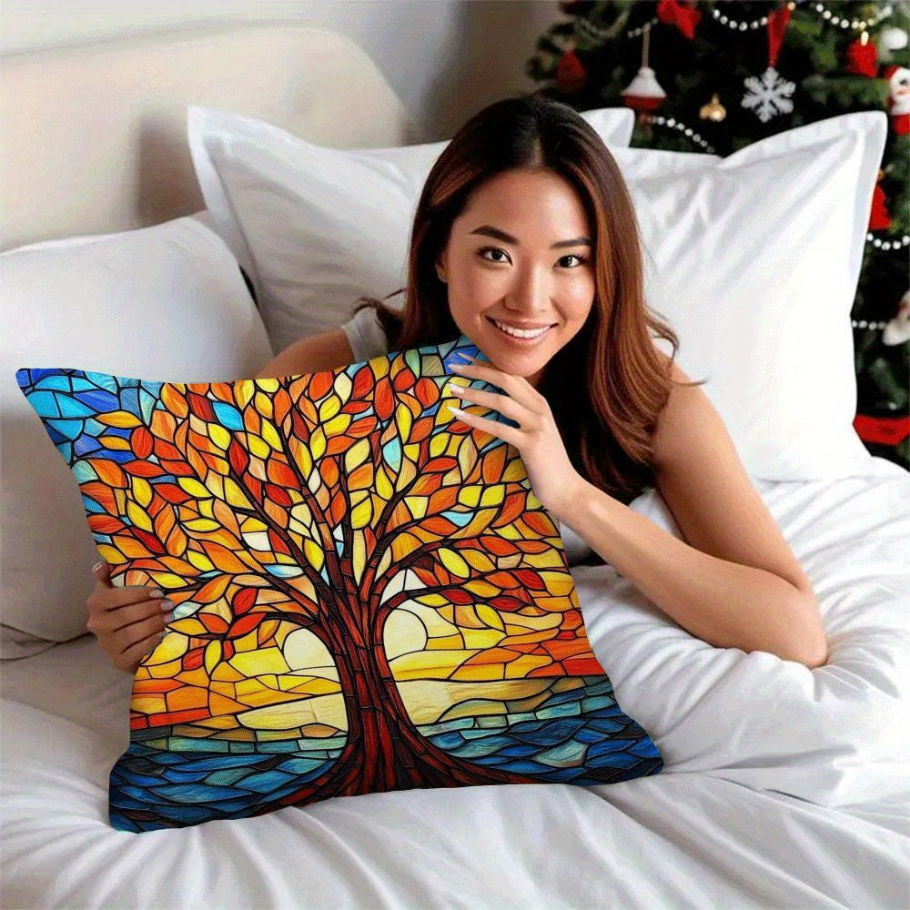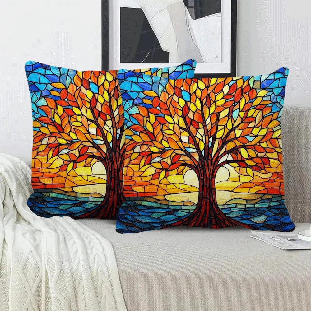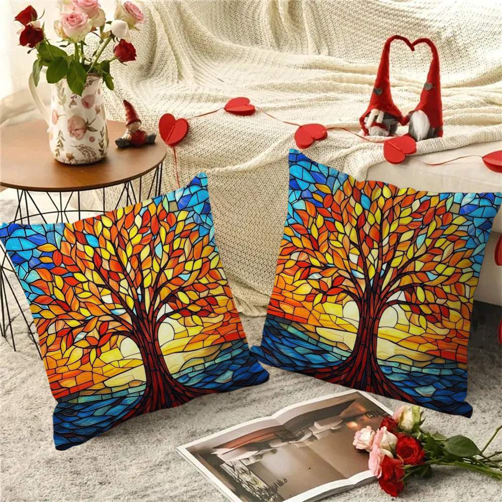 Два чехла для подушек из плюша с изображением Дерева Жизни осенью размером 45,72x45,72 см - Подходят для использования на диване, в спальне и на открытом воздухе. Имеют застежку на молнии и могут стираться в машине.