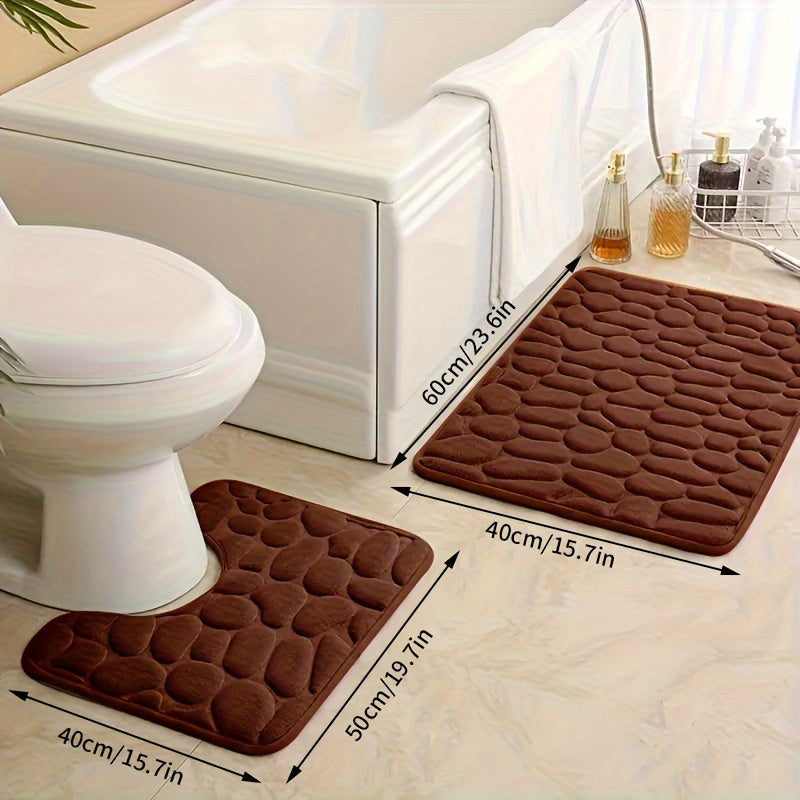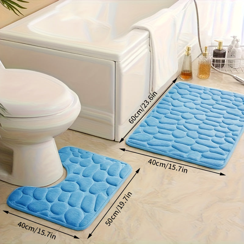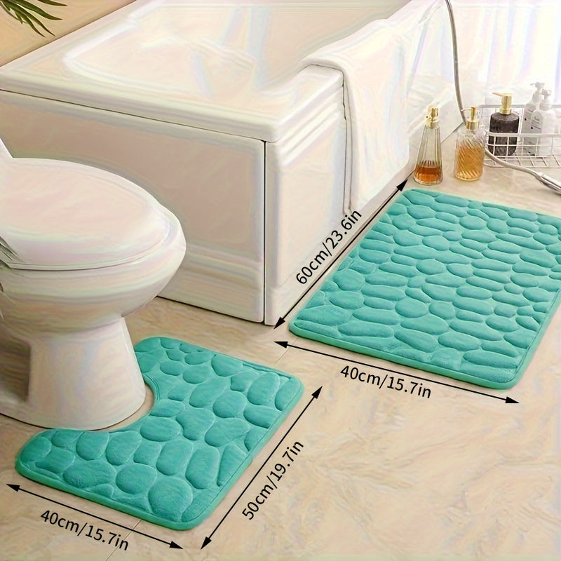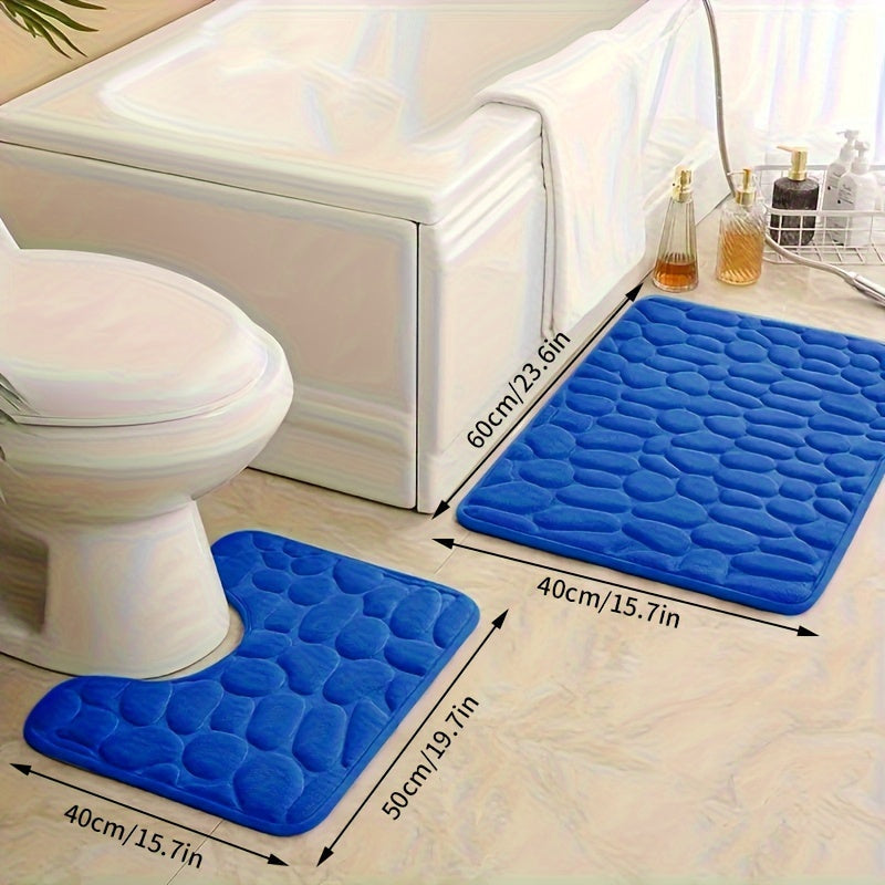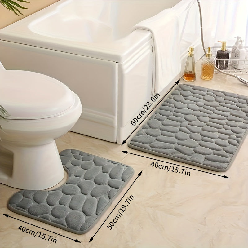 Два ультрамягких коврика для ванной с тиснением под камень, губчатый материал толщиной 25D. Нескользящие и хорошо впитывающие, подходят для использования в душе, на кухне, в прачечной и в качестве декора спальни.