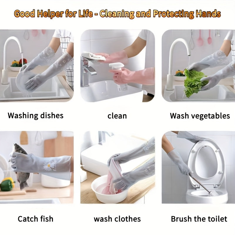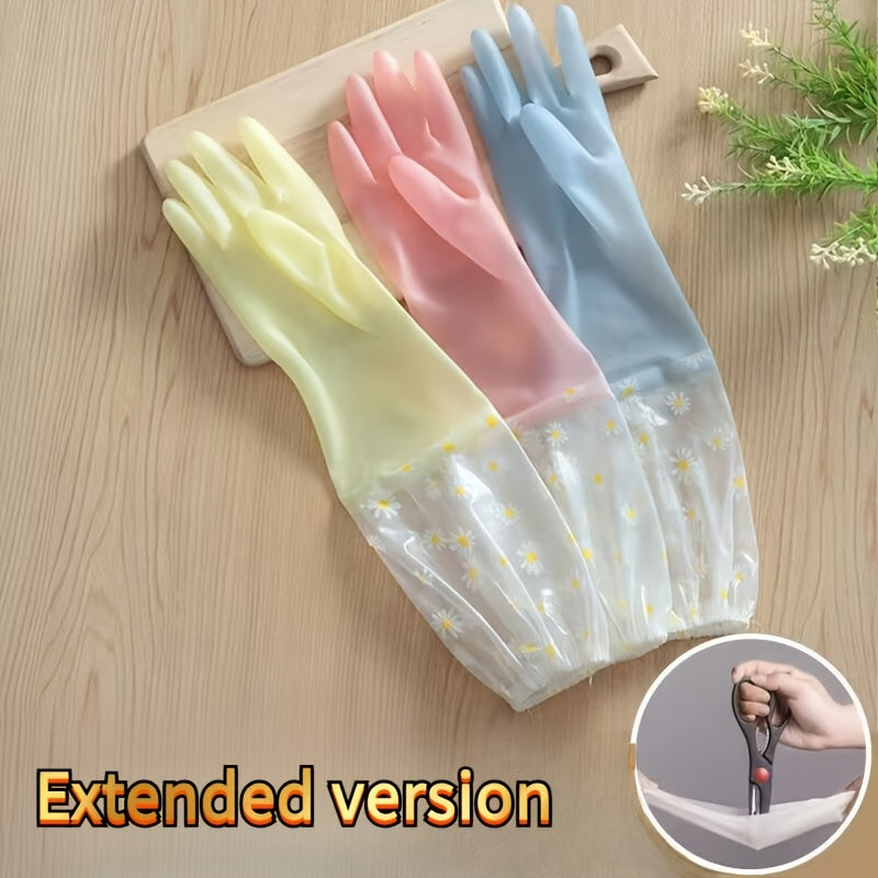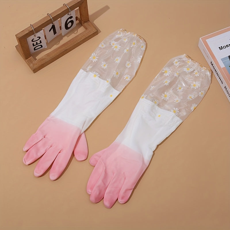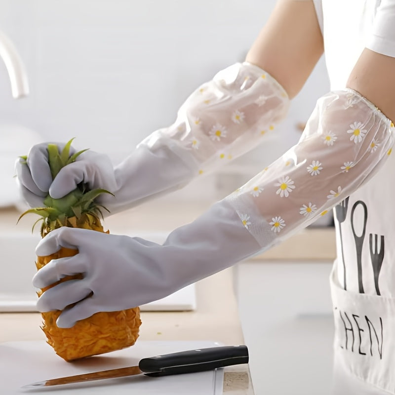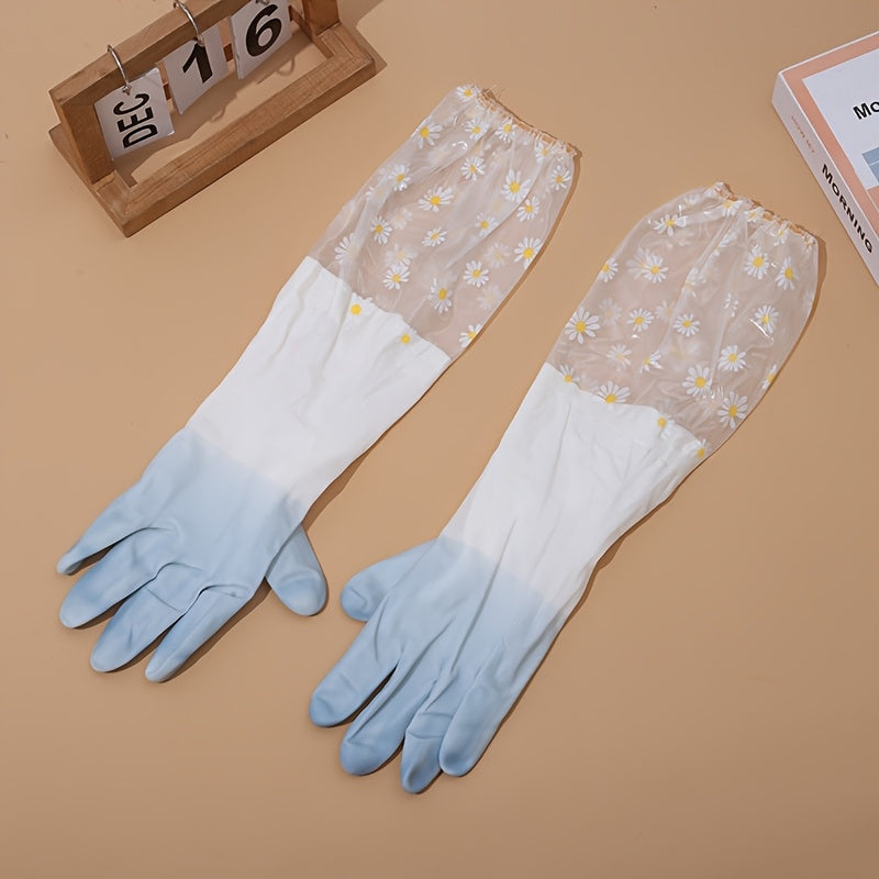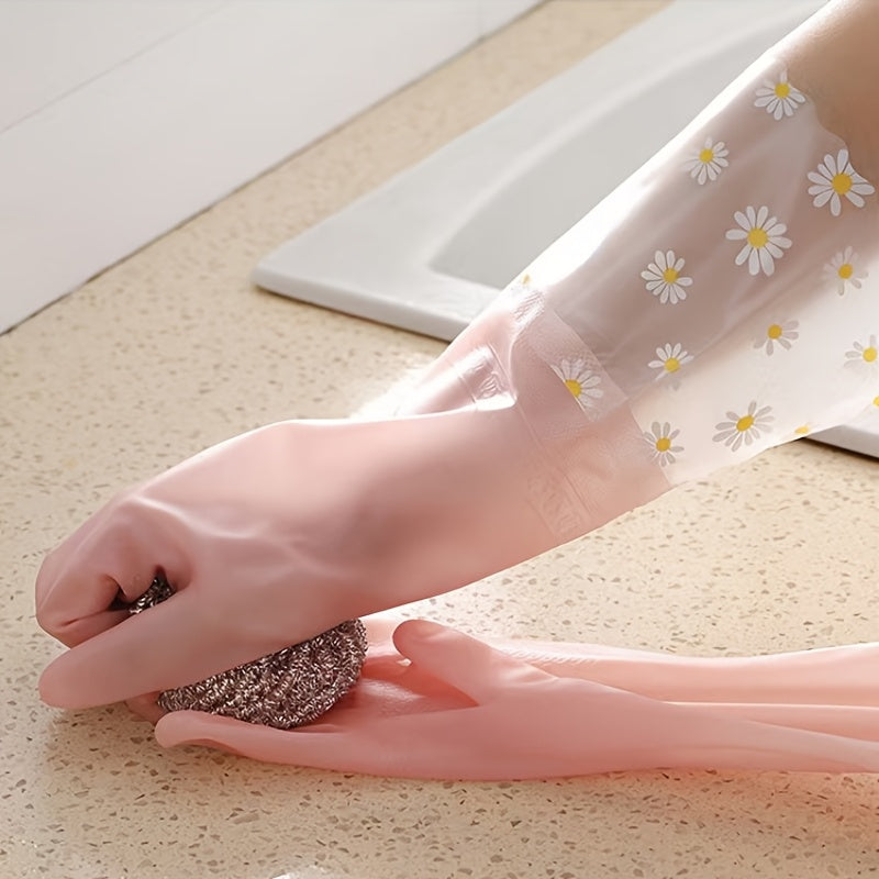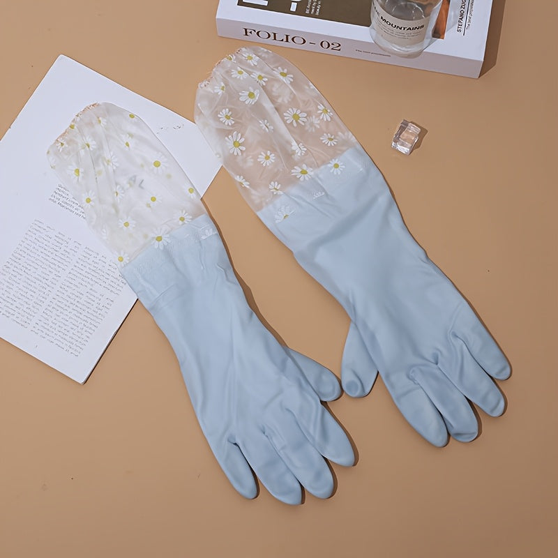 Водонепроницаемые перчатки для уборки из PVC с ярким узором из ромашек для кухни и дома