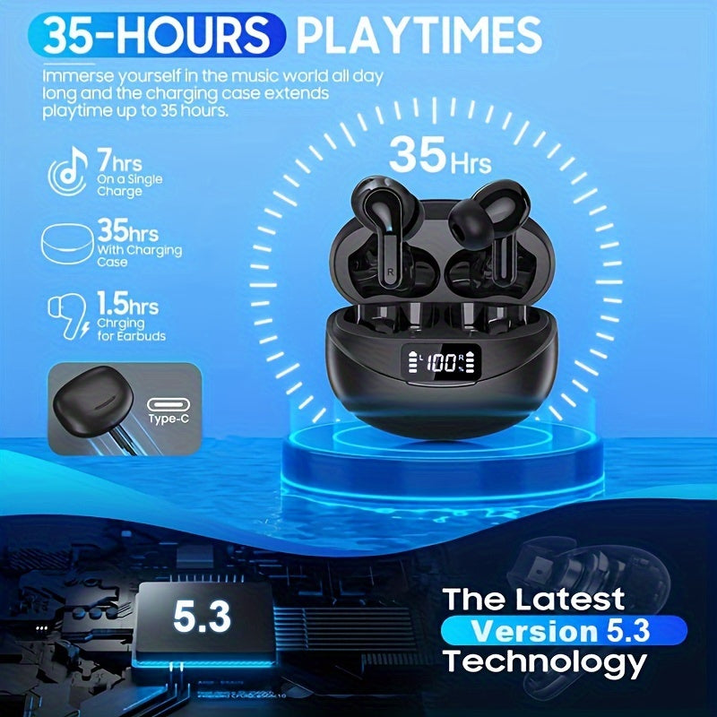 TWS наушники с шумоподавлением, сенсорным управлением и LED зарядным кейсом