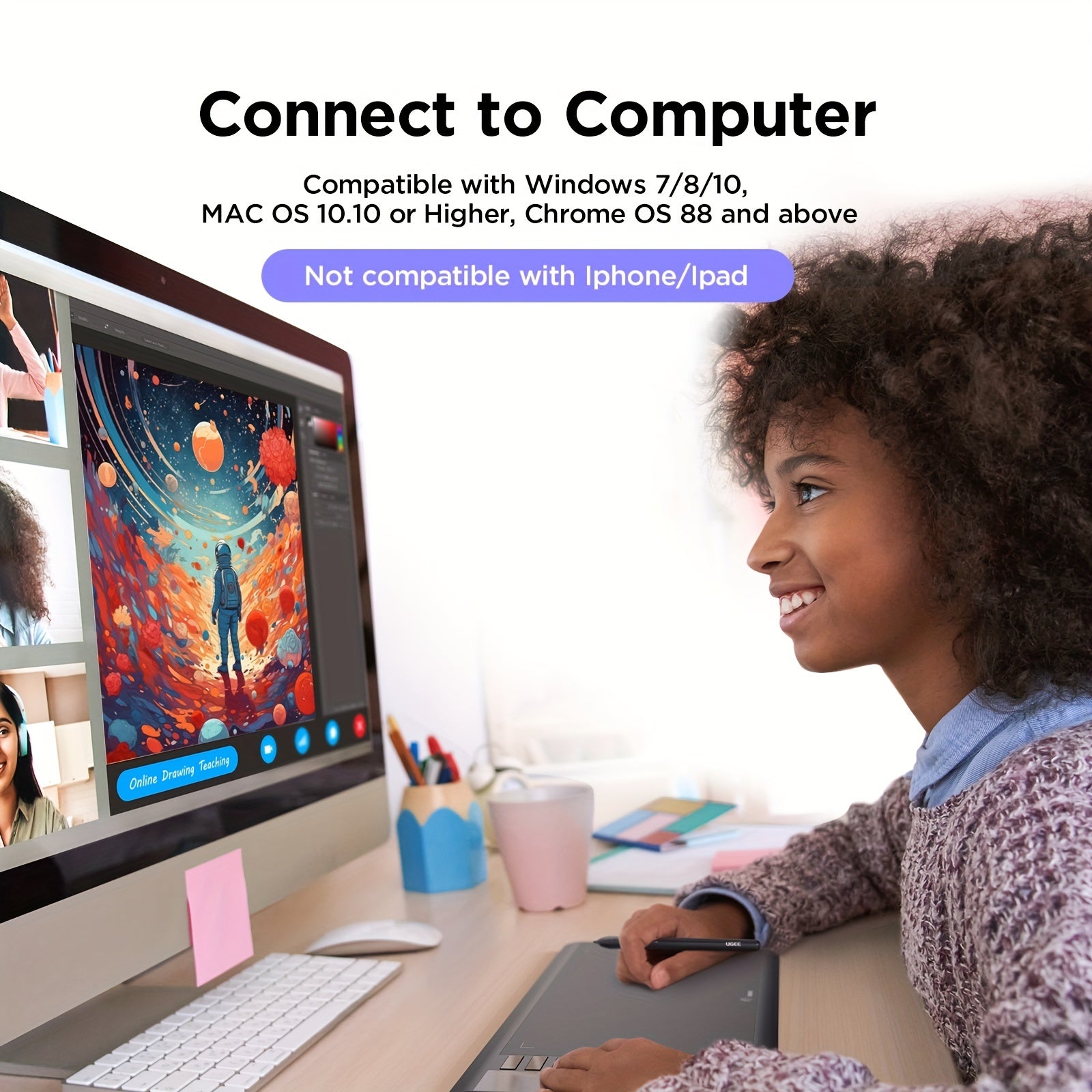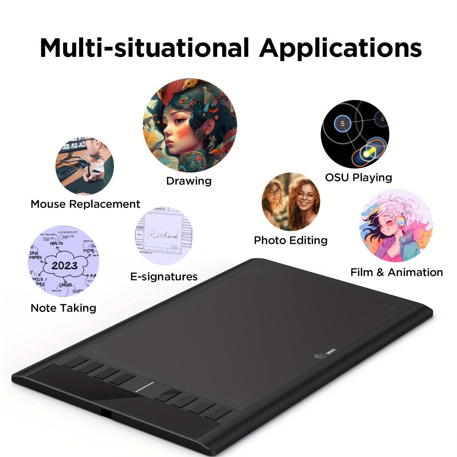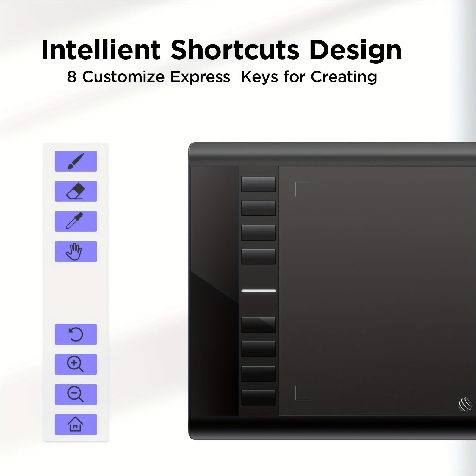 Графический планшет для рисования 25,4x15,2 см с 8 горячими клавишами и 8192 уровнями давления для Chromebook, Linux, Windows, Mac OS