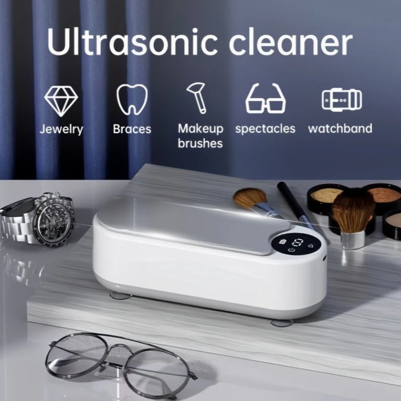 Ультразвуковой очиститель для украшений, брекетов, косметических кистей и ремешков часов, выполненный из прочного пластика с высокочастотной вибрацией. Эффективное и безопасное устройство для очистки, идеально подходит для очков и других предметов.