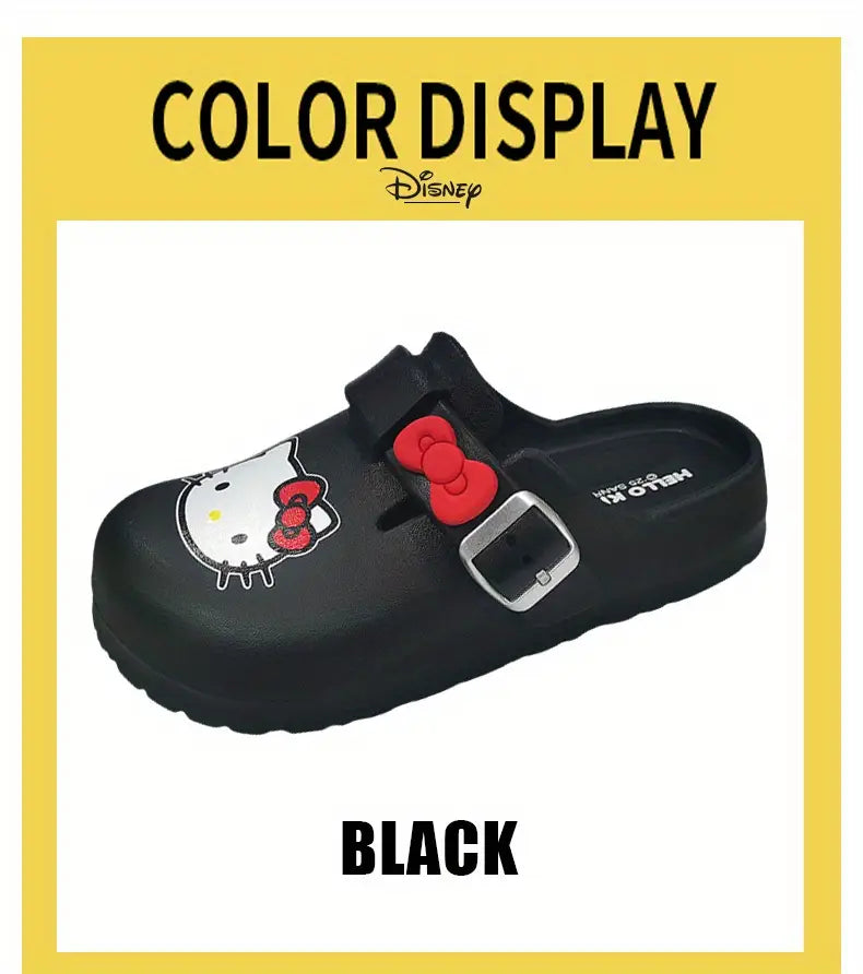Unisex EVA Clog Slippers Black Indoor Outdoor Water Shoes with Cartoon Bow