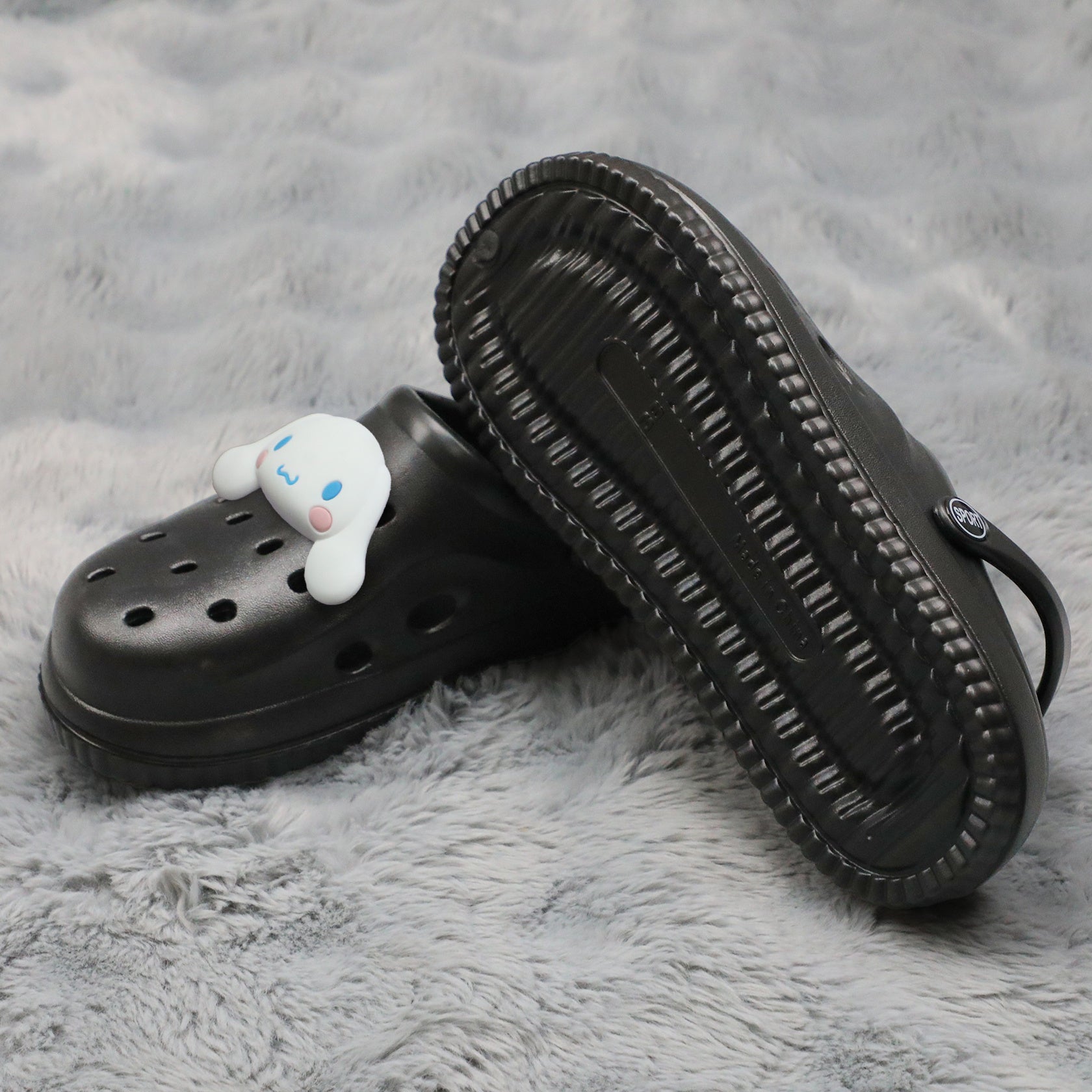 Unisex EVA Clog Slippers with Cartoon Pattern Black White Indoor Outdoor