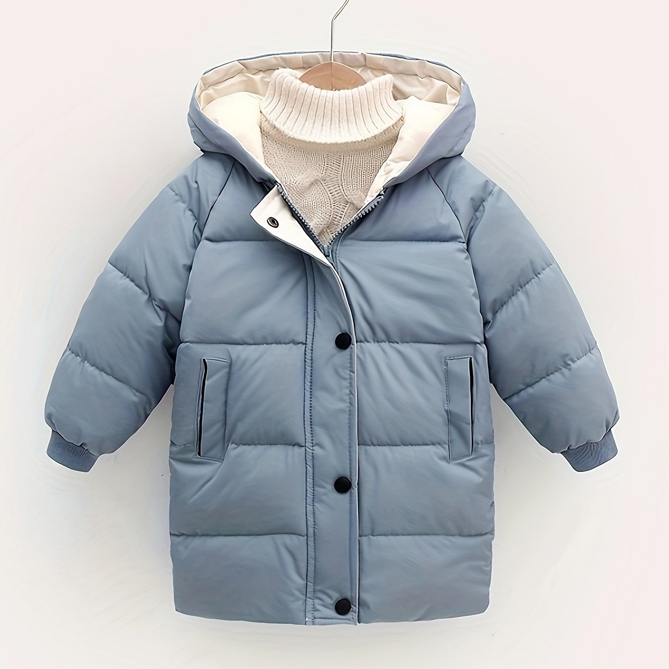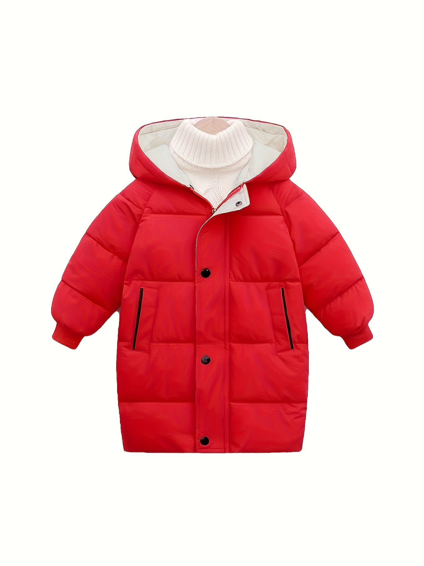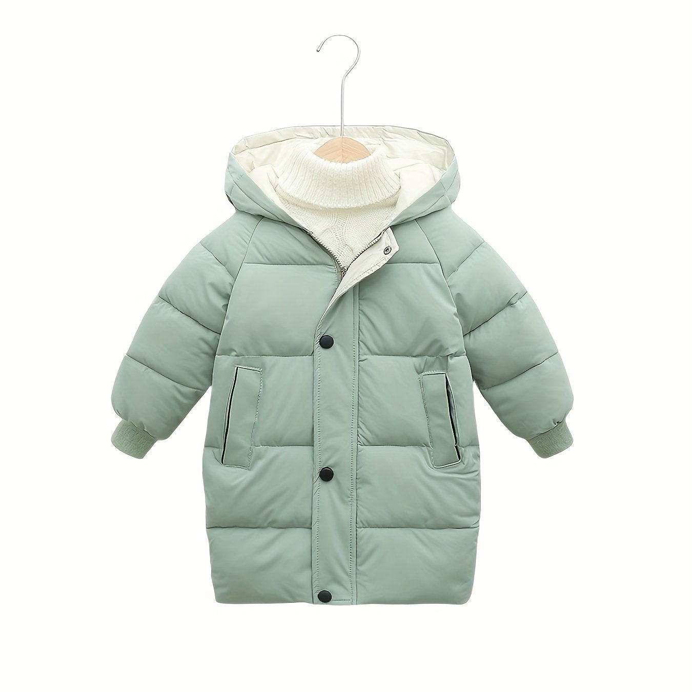 Детский утеплённый плащ унисекс средней длины с капюшоном, однотонный, из полиэстера, осень-зима, повседневный