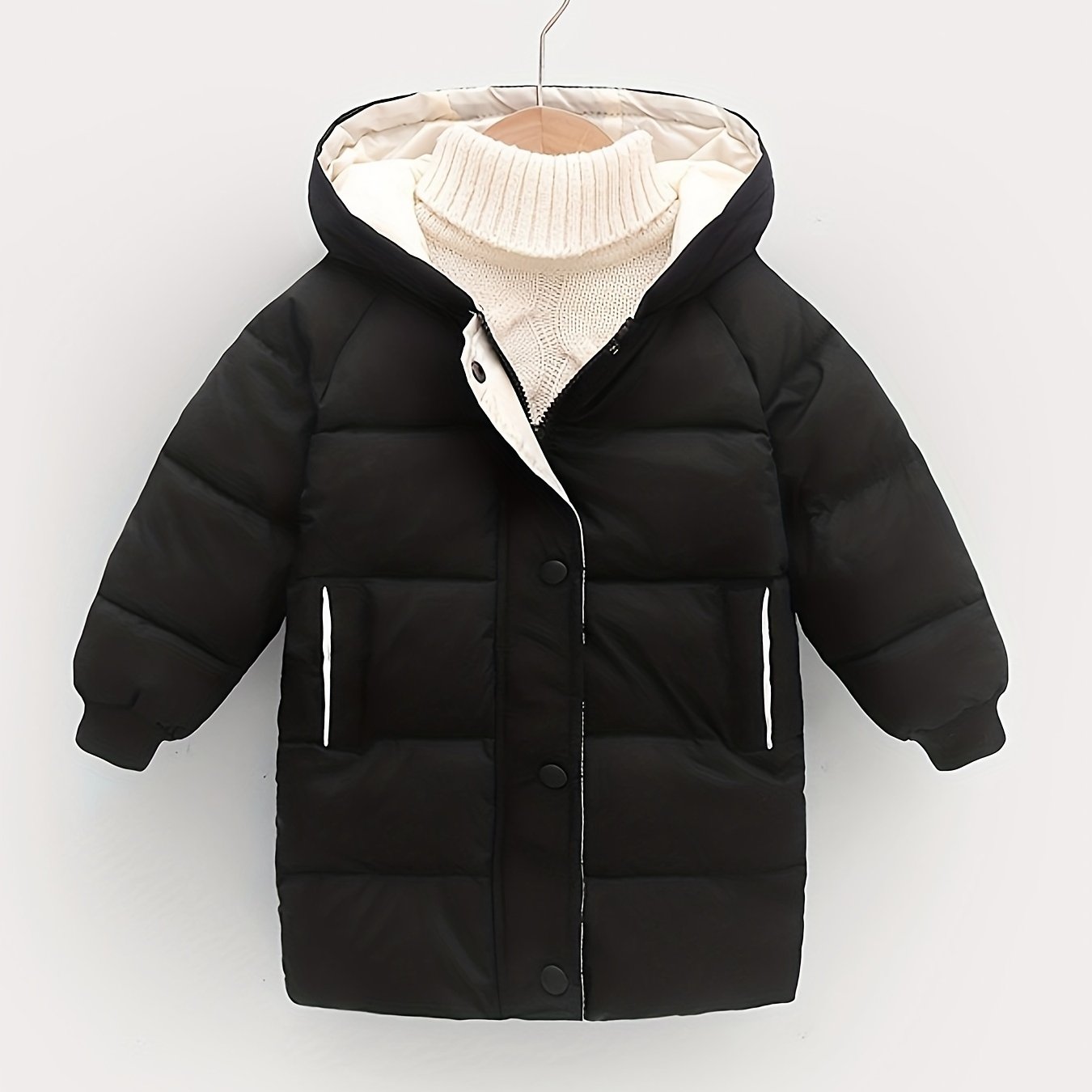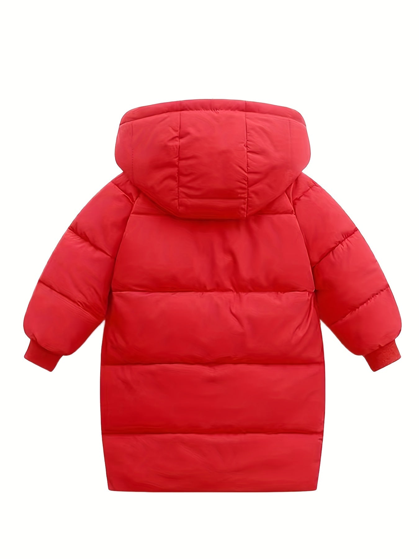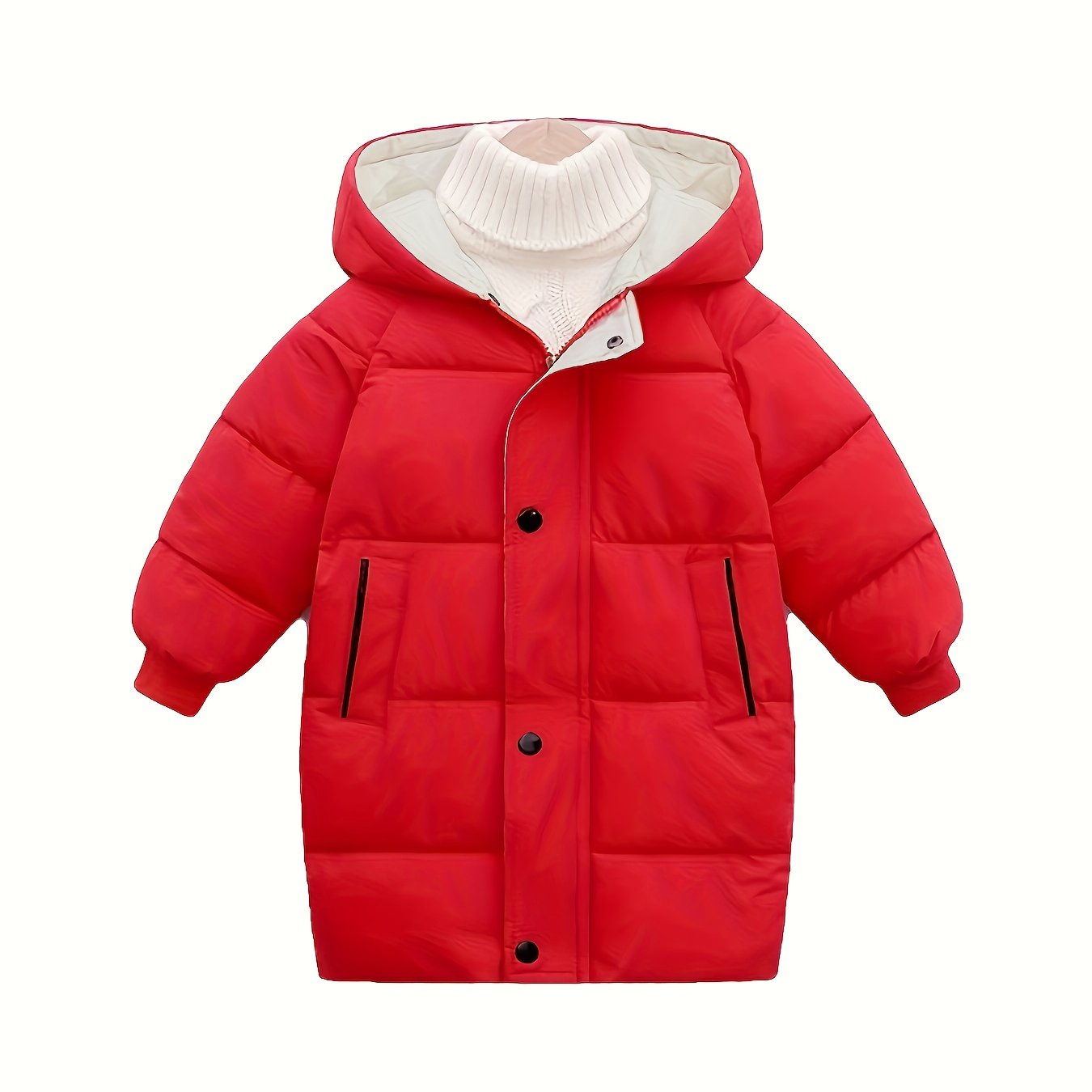 Детский утеплённый плащ унисекс средней длины с капюшоном, однотонный, из полиэстера, осень-зима, повседневный