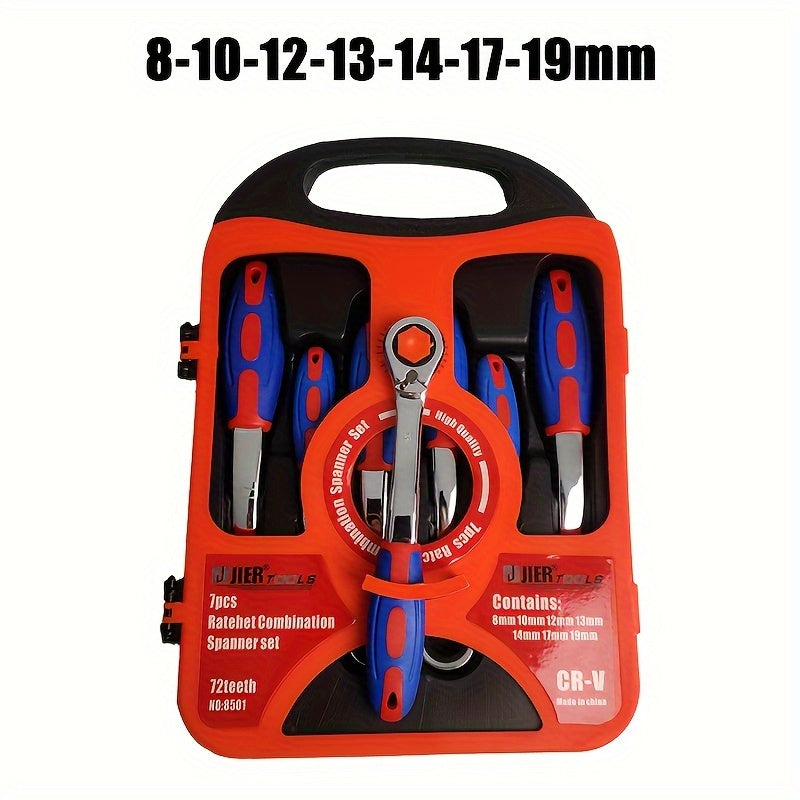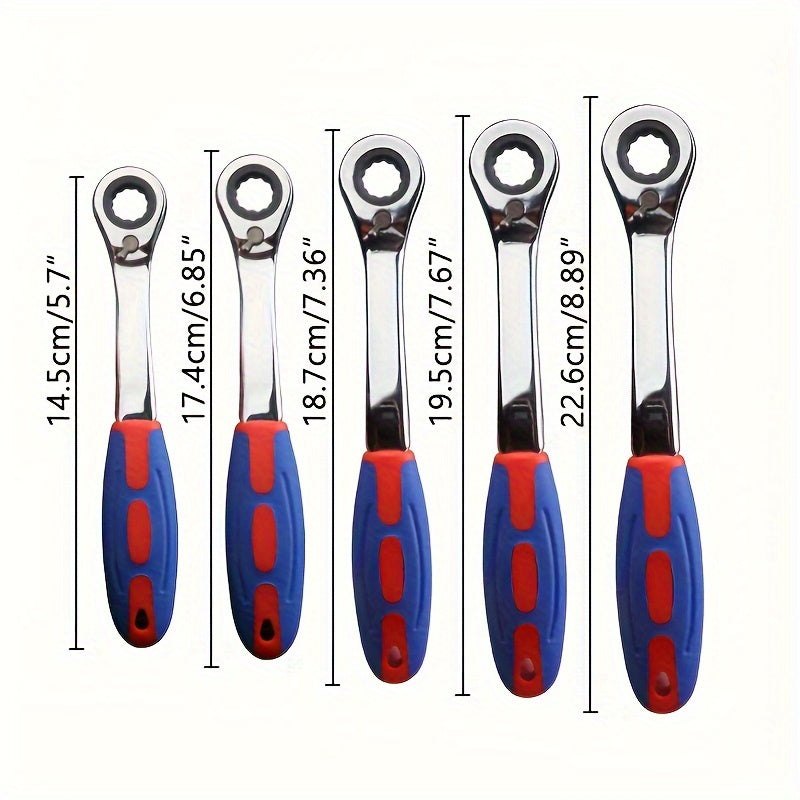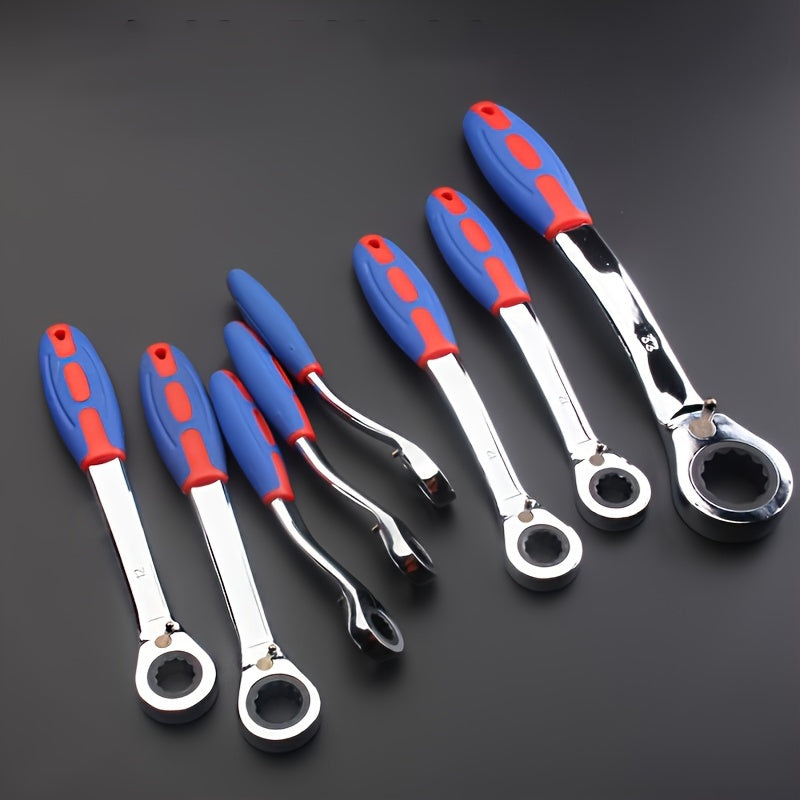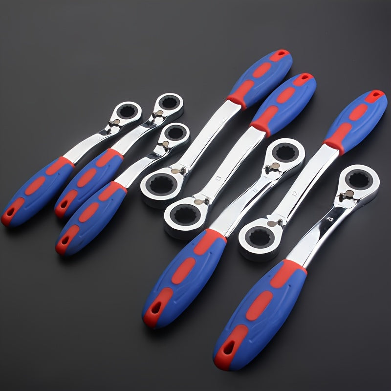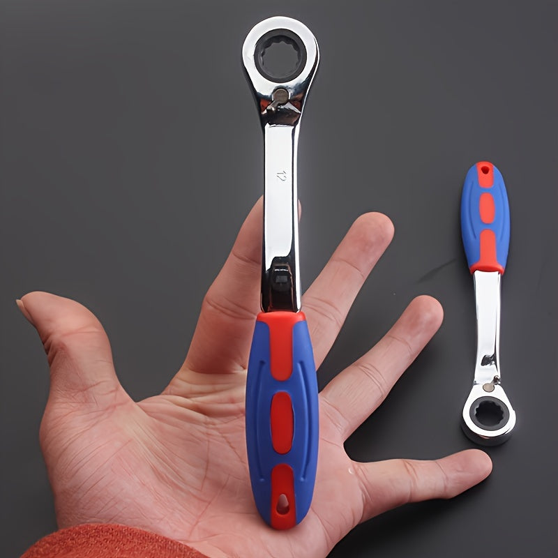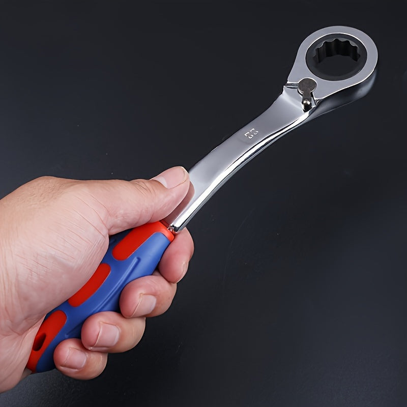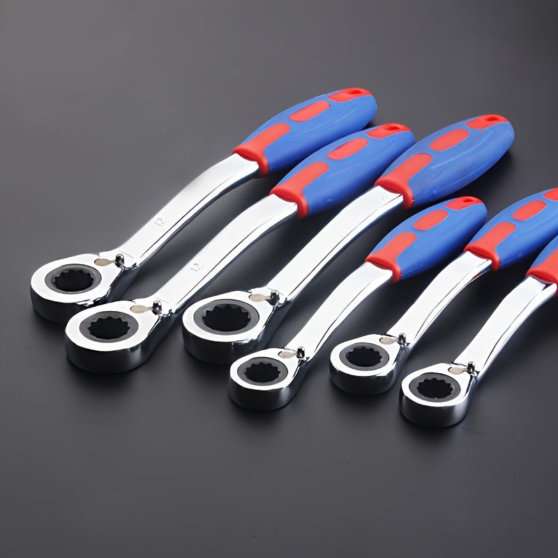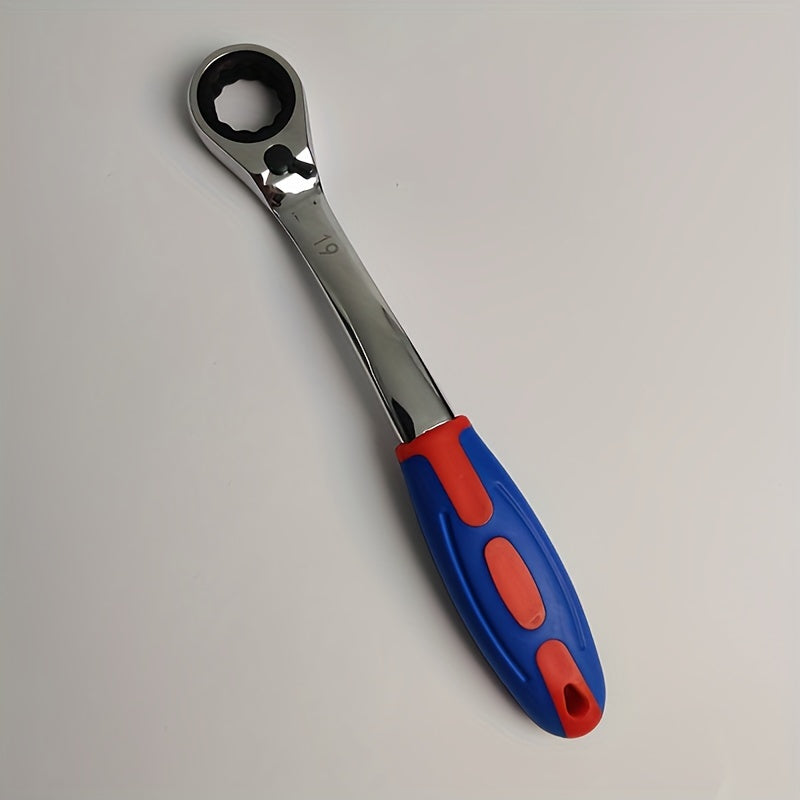 Унисекс пластиковый двухсторонний трещоточный ключ 8-19мм с изогнутой рукояткой