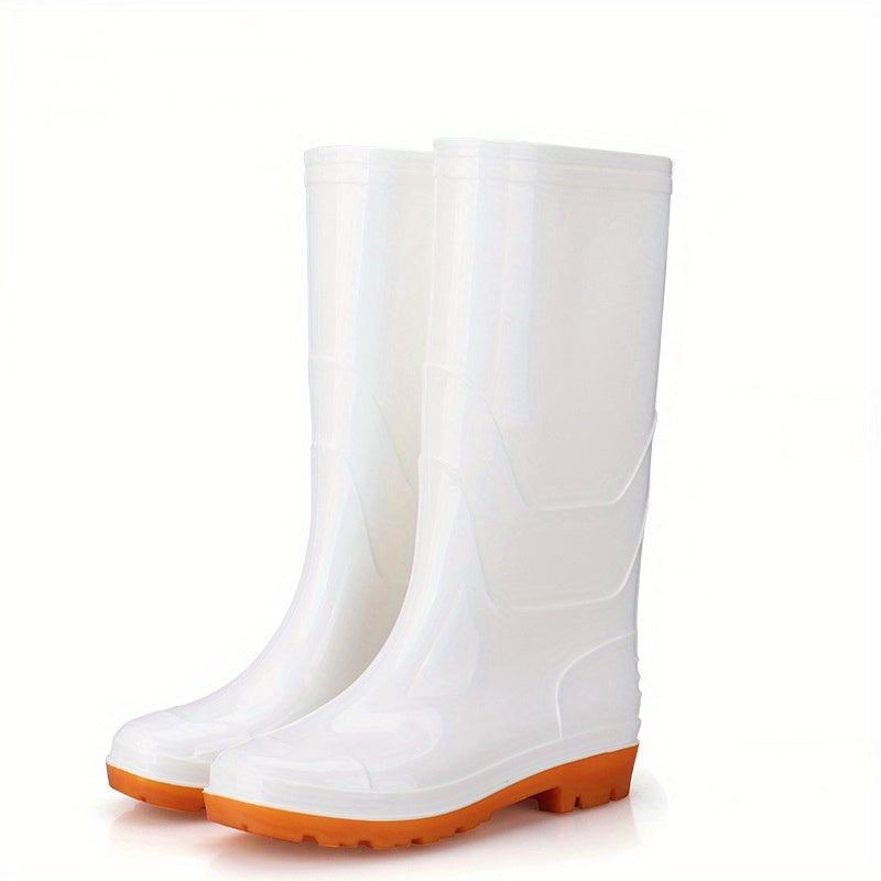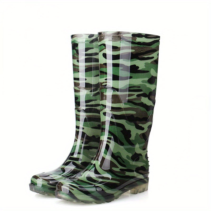 Унисекс высокие резиновые сапоги черного, белого, желтого, камуфляжного цвета с нескользящей резиновой подошвой.