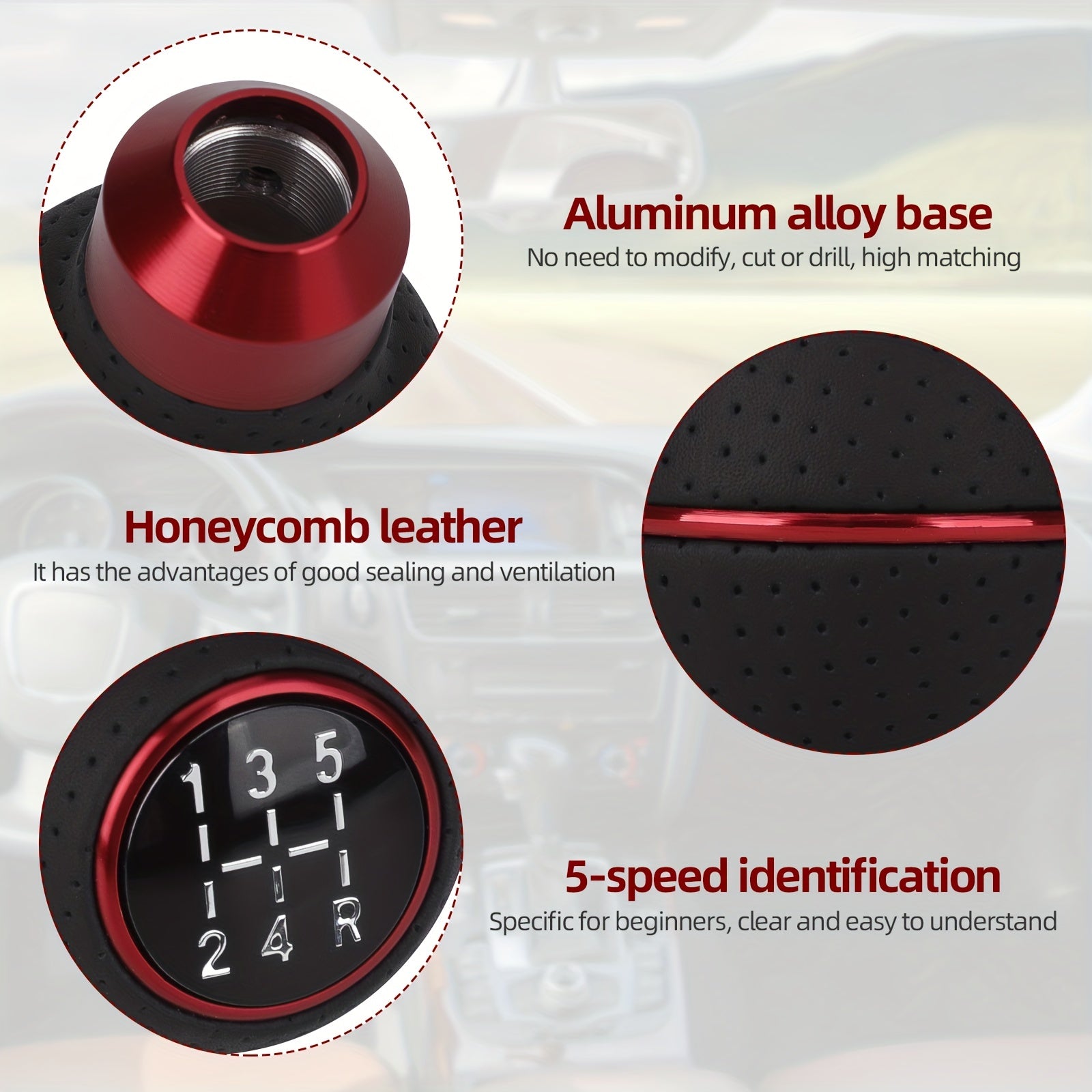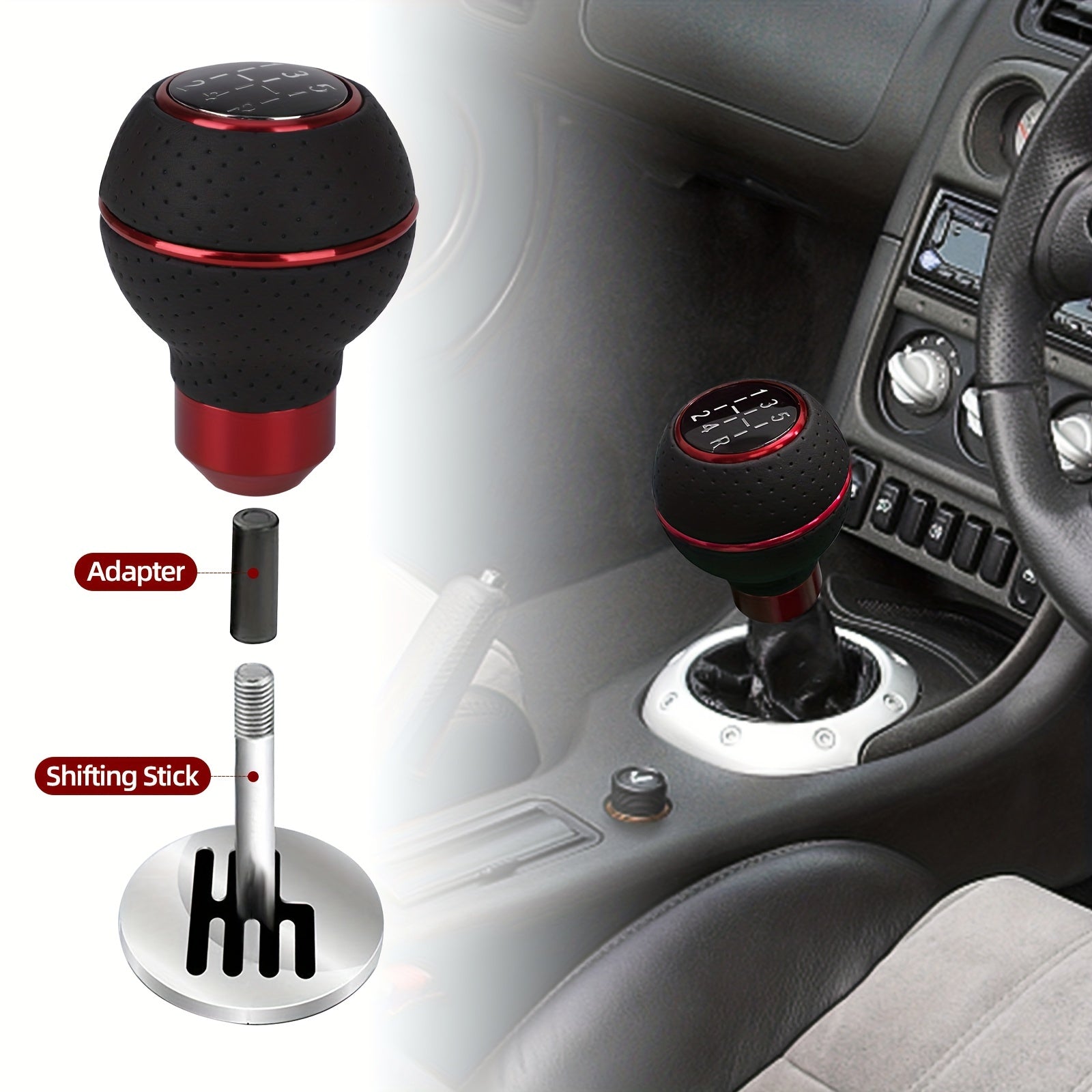 Универсальная алюминиевая кожаная рукоятка переключения передач с ручным управлением, 5-скоростная, с адаптерами