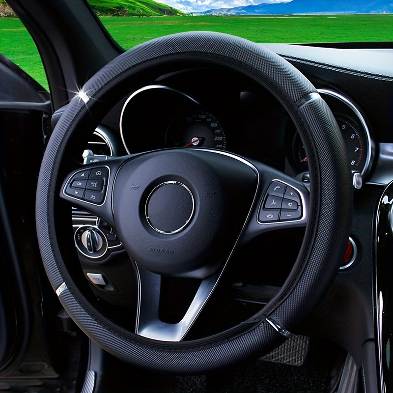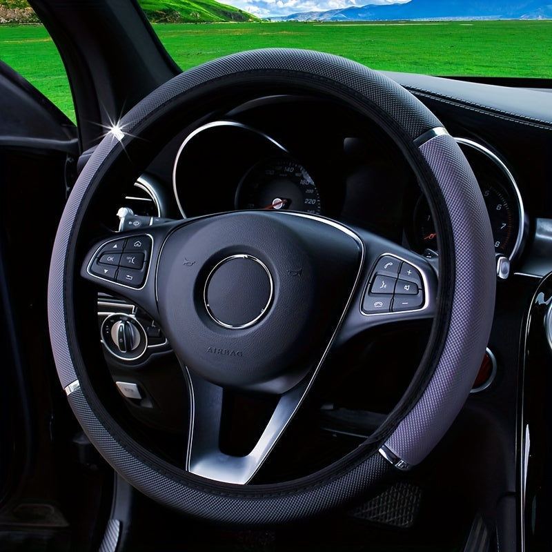 Универсальный кожзаменительный чехол на руль с металлической полосой и блестками