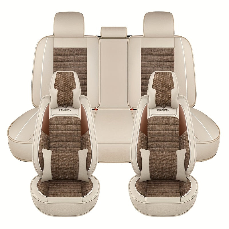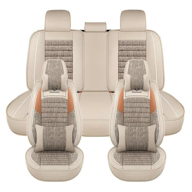 Универсальный чехол на автомобильное сиденье из льна, дышащий, полностью закрывающий для пяти сидений