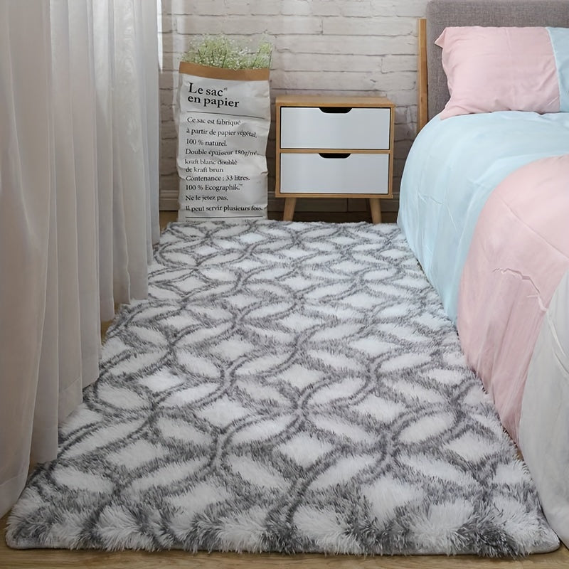 Высококачественный плюшевый ковер для спальни — мягкий, нескользящий и простой в уходе ковер с очаровательным дизайном в виде колец — идеально подходит для гостиной, детской комнаты и домашнего декора.