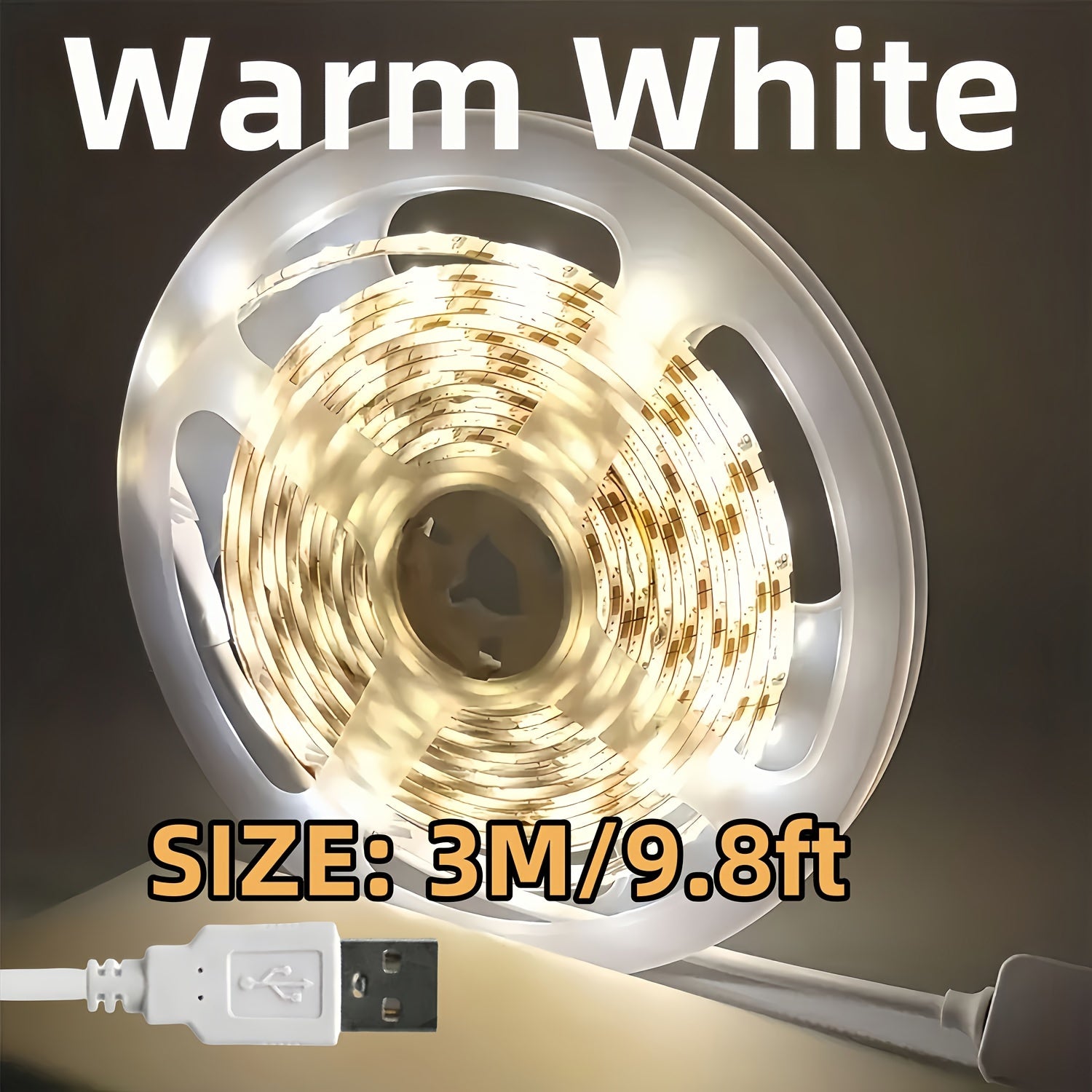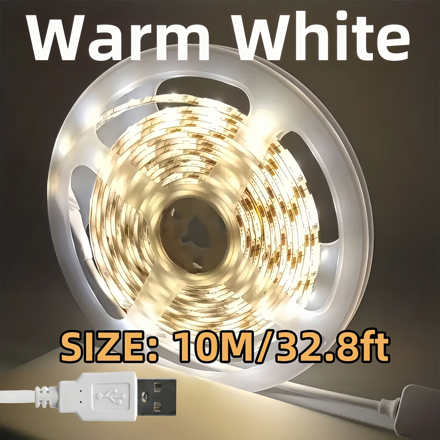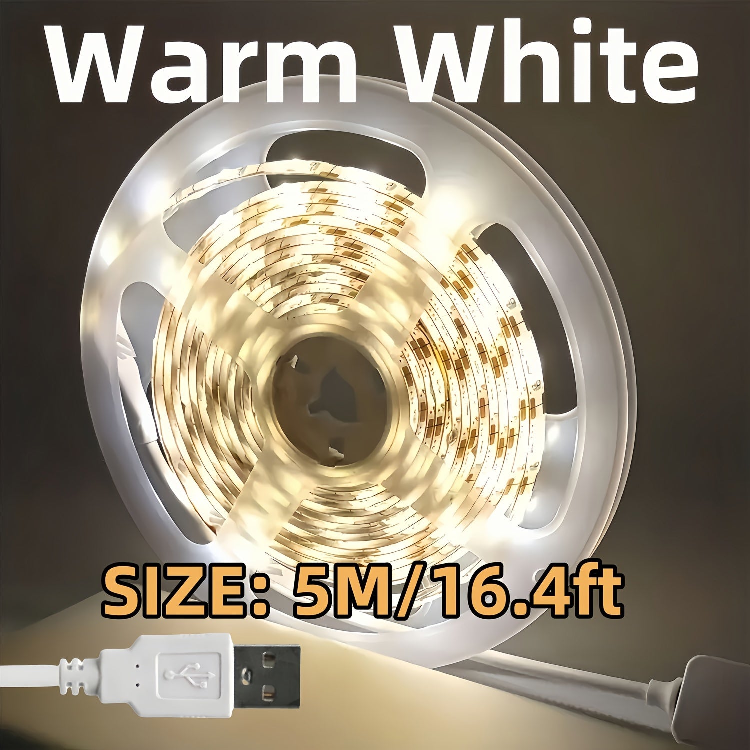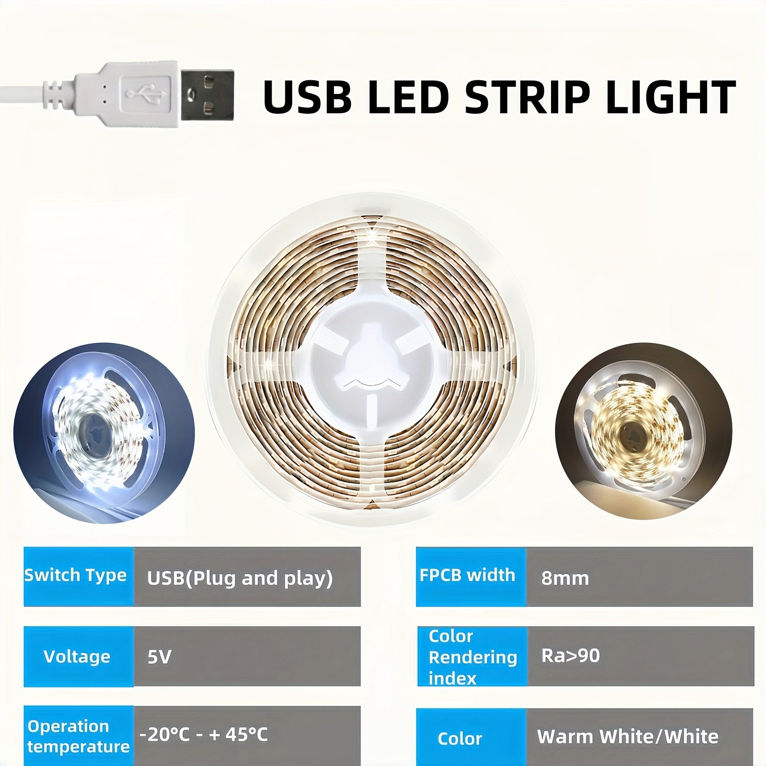 Светодиодная лента USB для подсветки телевизора и домашнего декора, гибкая лента (5В) в белом/теплом белом цвете для спальни, шкафа, кухни DIY - можно резать, самоклеящаяся, не требует батареек - длина