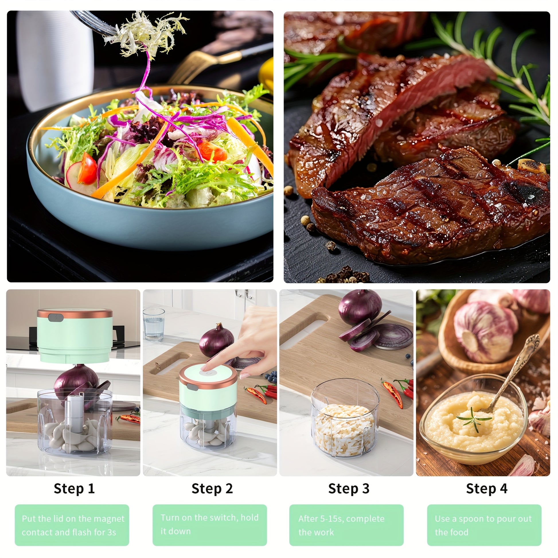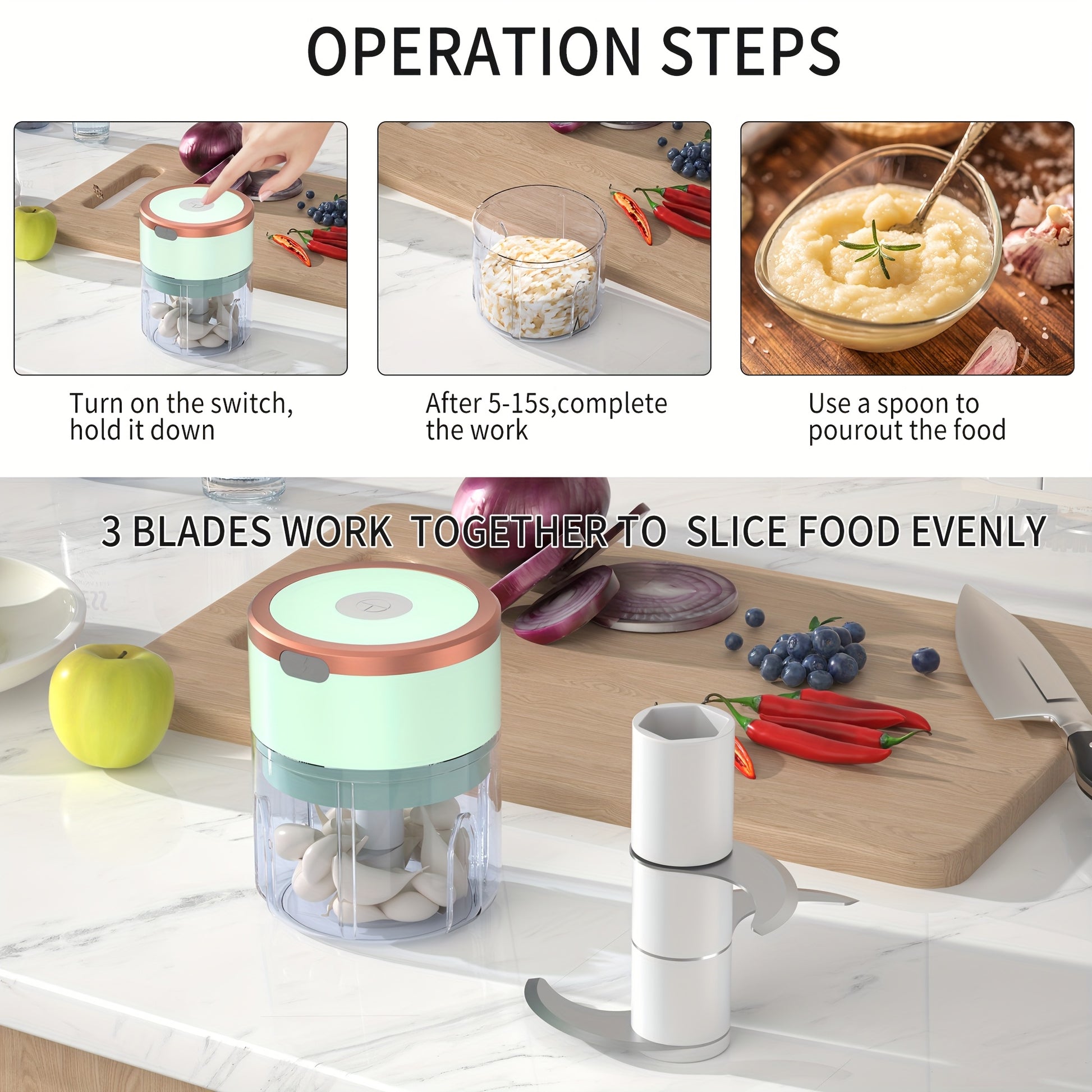 Мини-кухонный комбайн-блендер с двойными лезвиями, портативный, перезаряжаемый, для овощей, фруктов, мяса, имбиря, чили