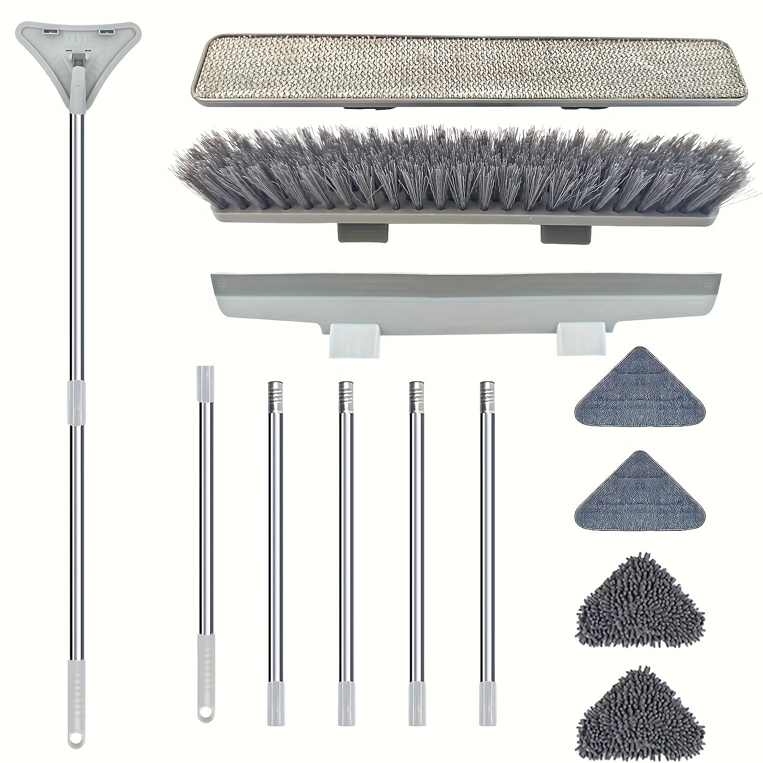Универсальная швабра с настенным креплением для очистки различных поверхностей, включая окна, полы, потолки, ванны, раковины и многое другое. В комплект входят щетки для чистки плитки и возможности удаления пыли, включает 4 многоразовых подушки.