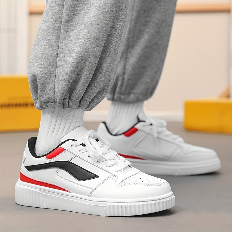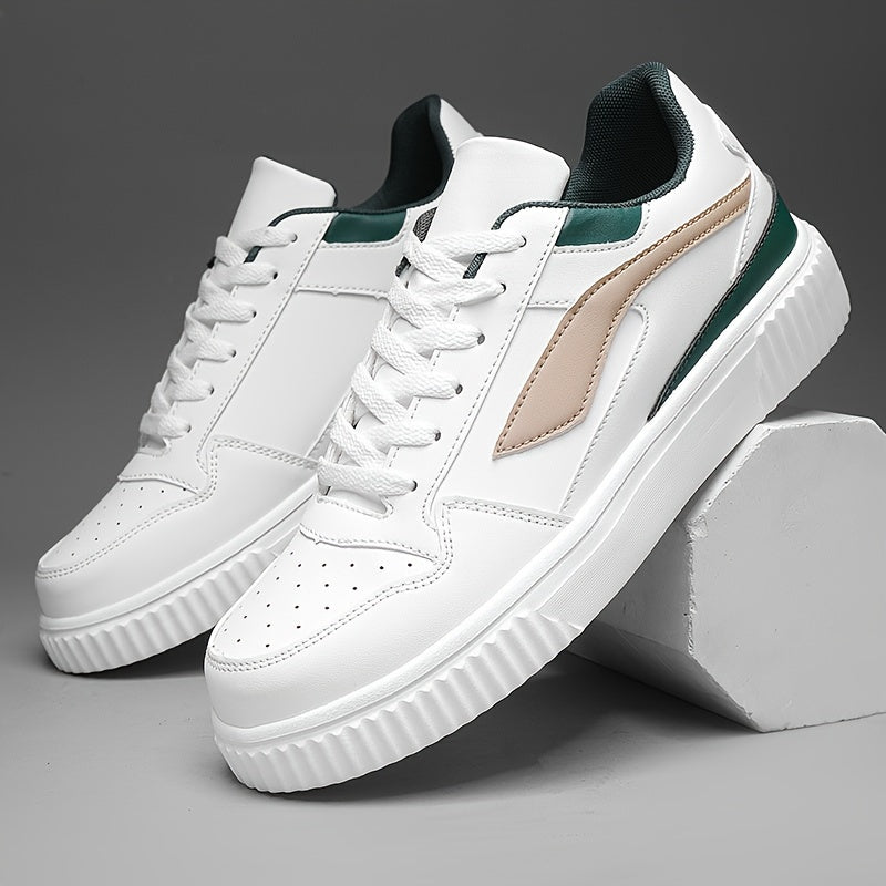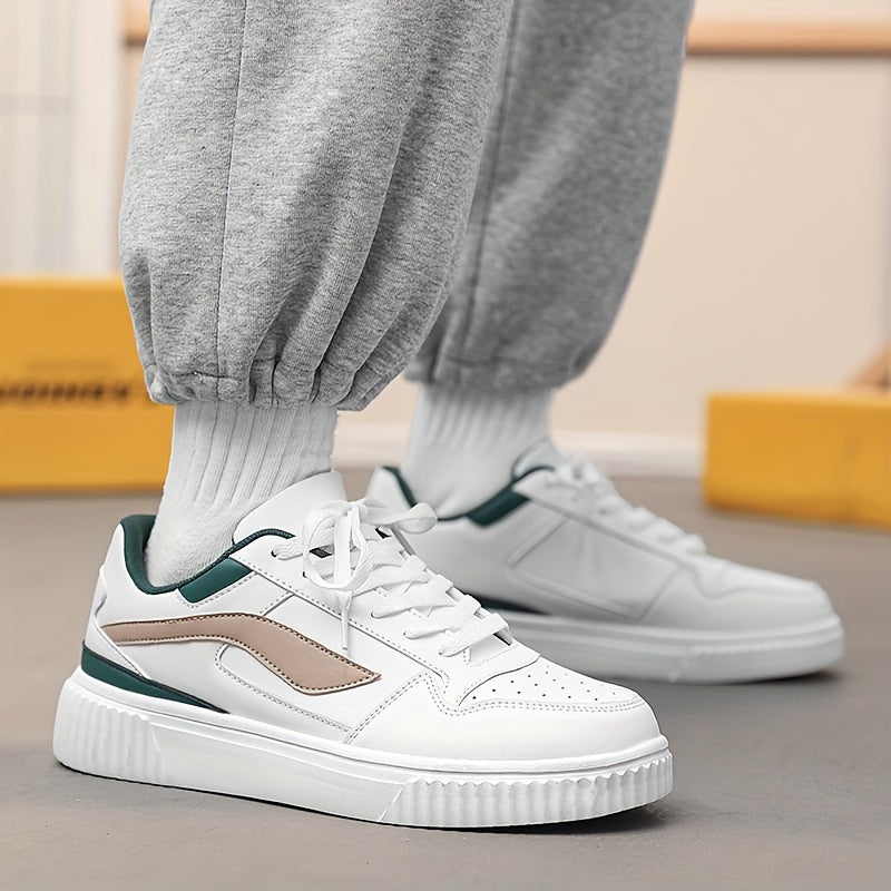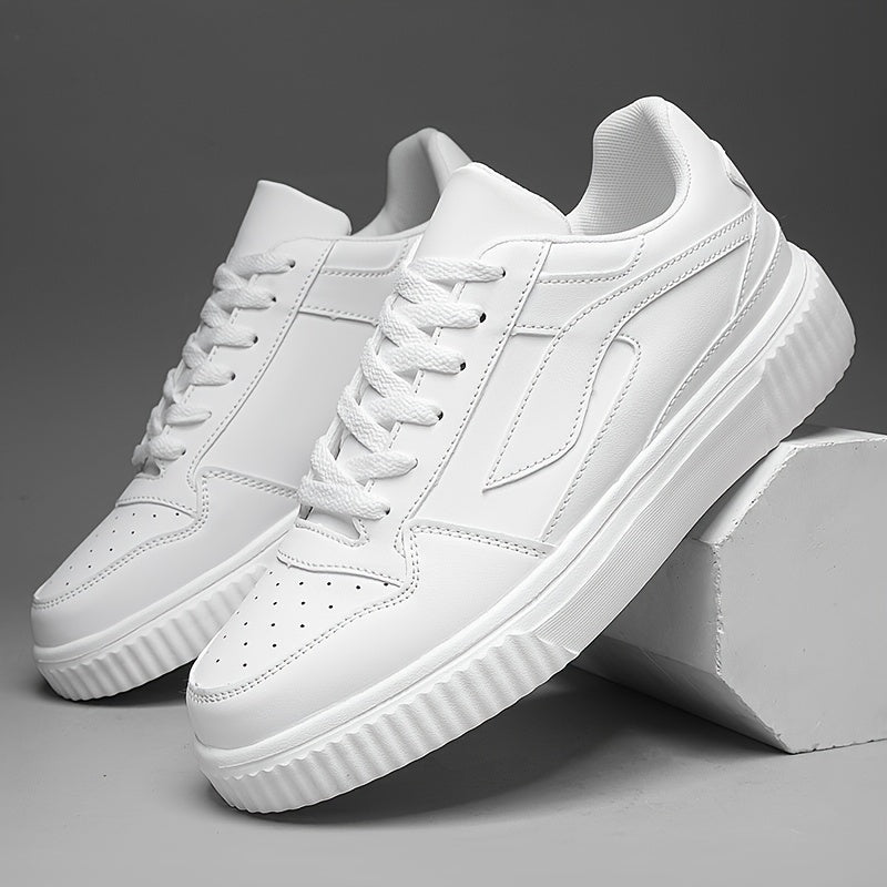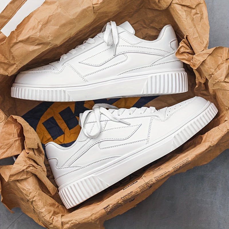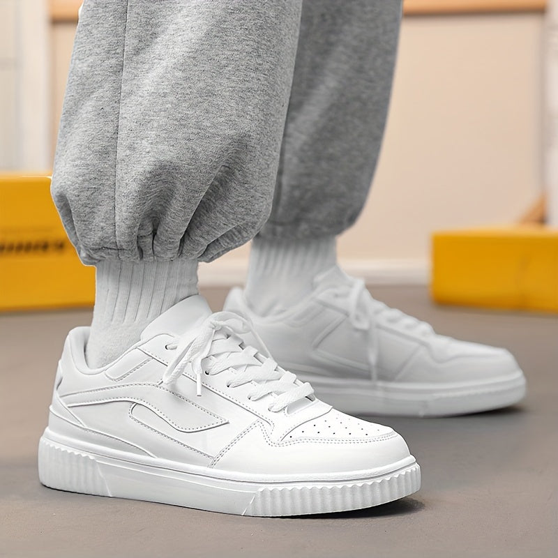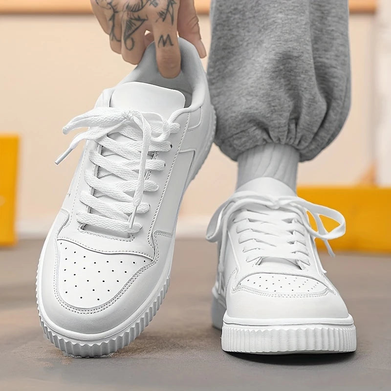 Универсальные белые кроссовки на шнуровке с дышащей сетчатой подкладкой, прочным верхом из ПУ и стелькой из ЭВА для всех сезонов.