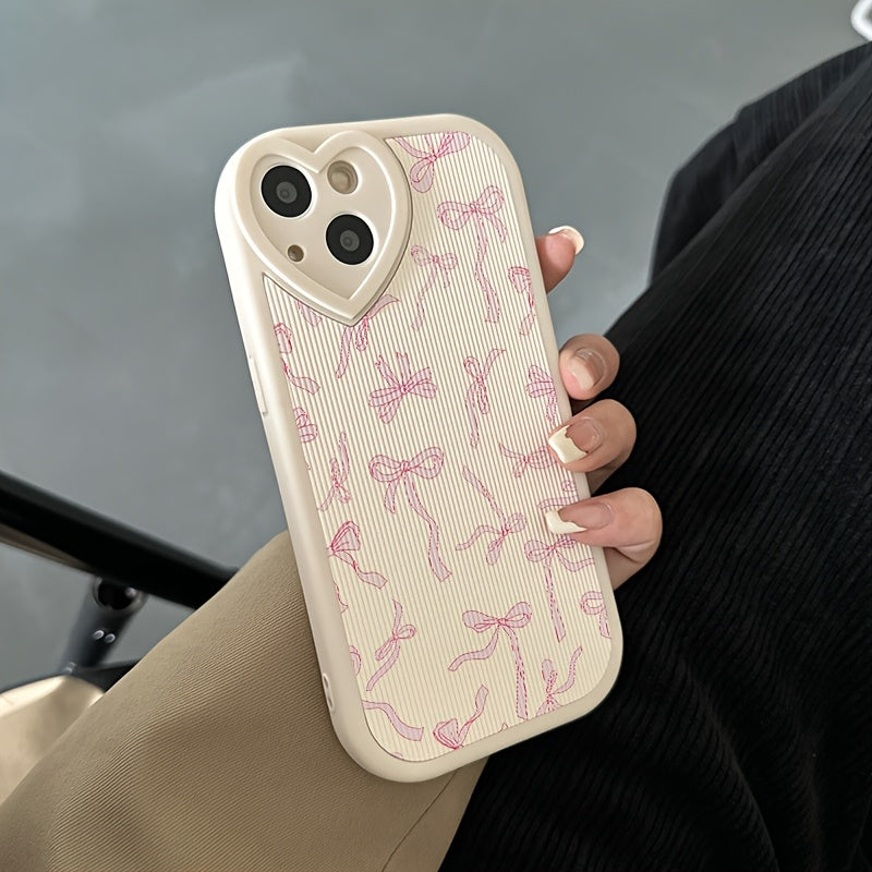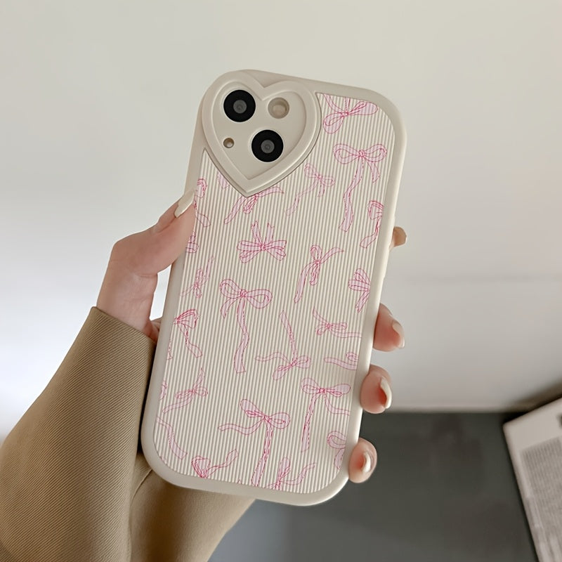 Чехол для телефона из PU-кожи с вертикальным узором и нарисованным бантом для серии Apple 15/14/13/Pro12/11, 16/16Promax