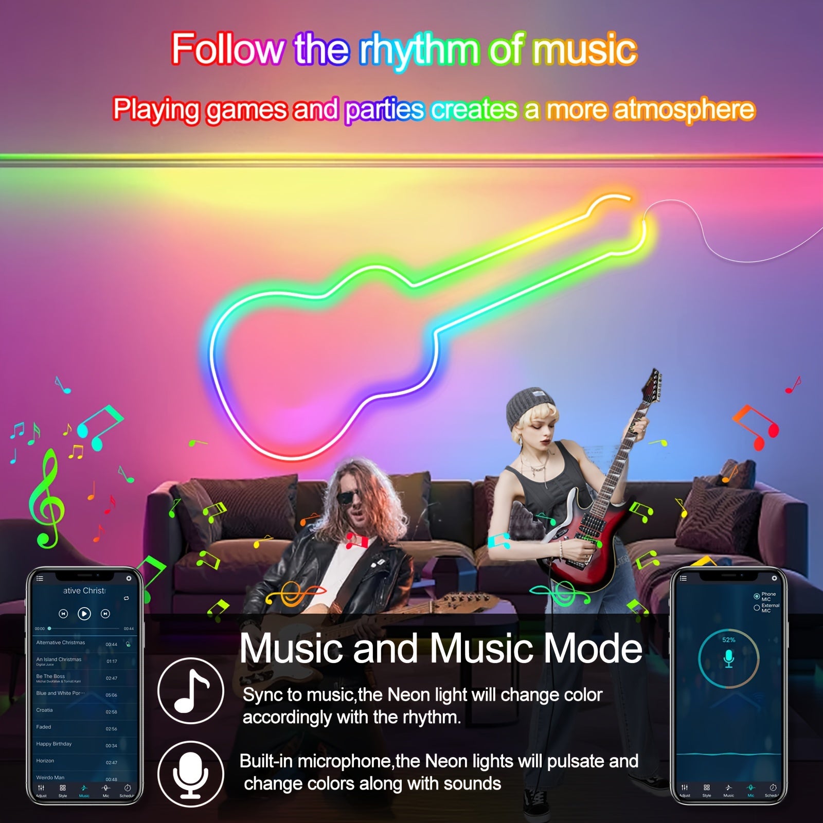 Яркая умная RGB+IC неоновая светодиодная лента с беспроводным и 2.4G пультом дистанционного управления, синхронизацией с музыкой, встроенным микрофоном, питающаяся от USB, для спальни, гостиной, декора для вечеринок 2/3/5м, гибкая.