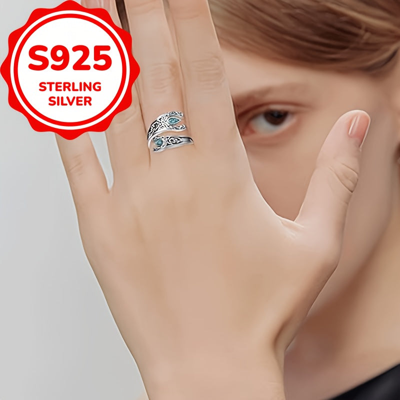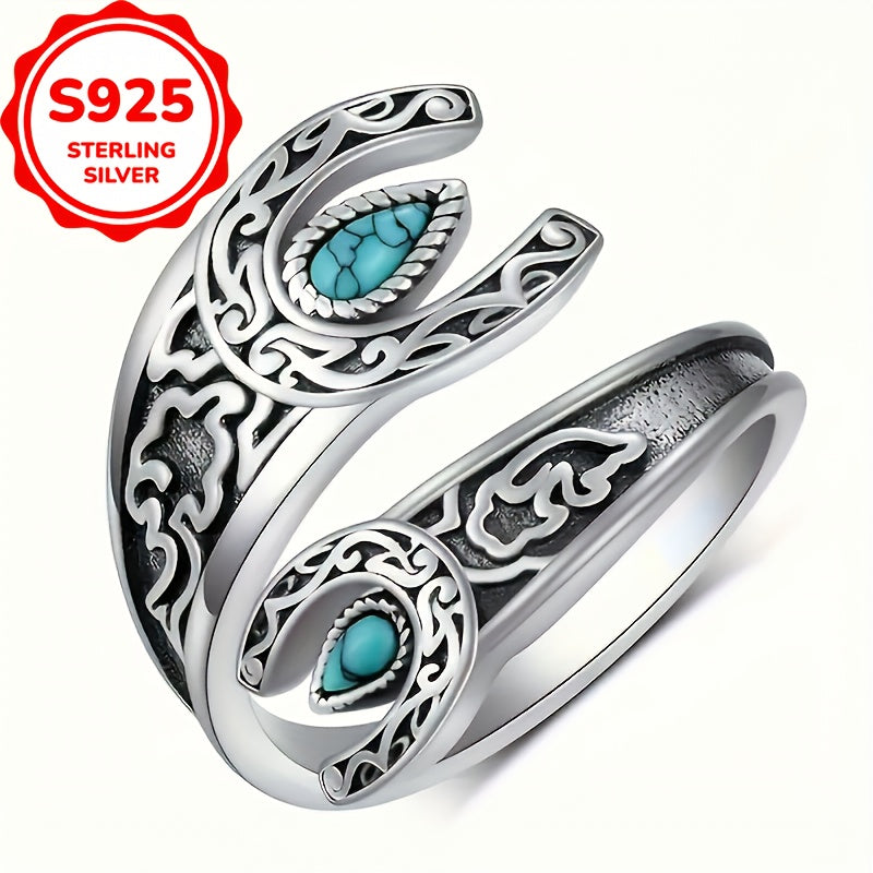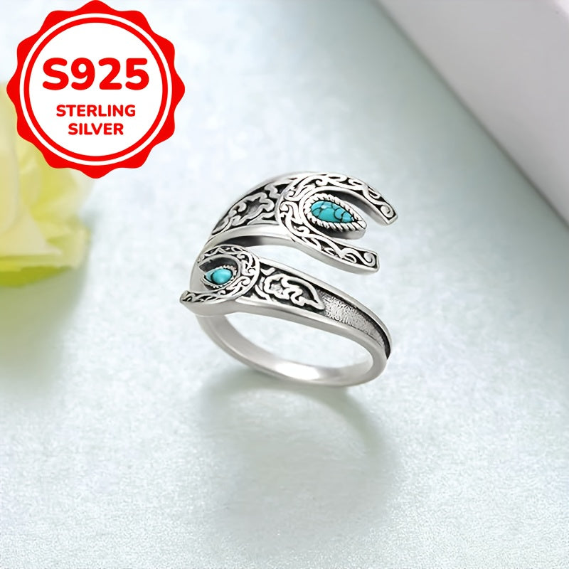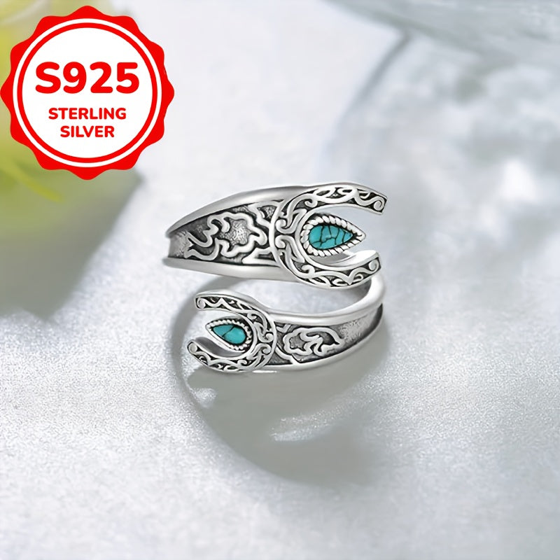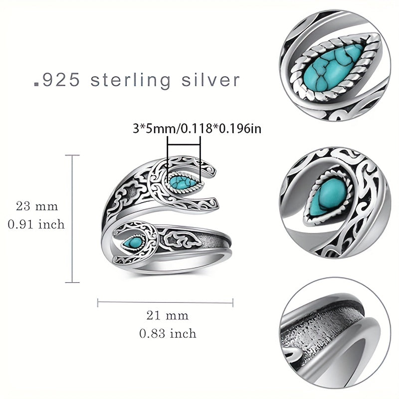 Винтажное гравированное бохо-шик кольцо с бирюзой - гипоаллергенное 925 стерлинговое серебро, регулируемый размер, идеальный подарок для нее