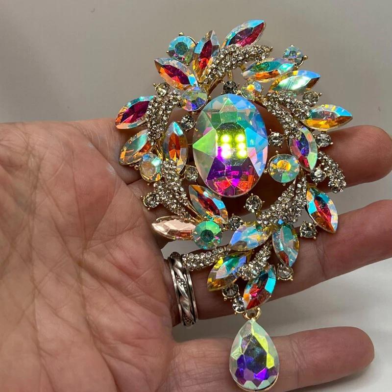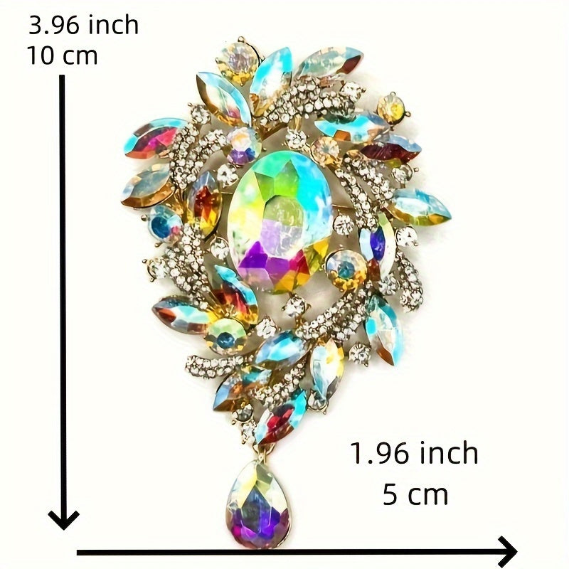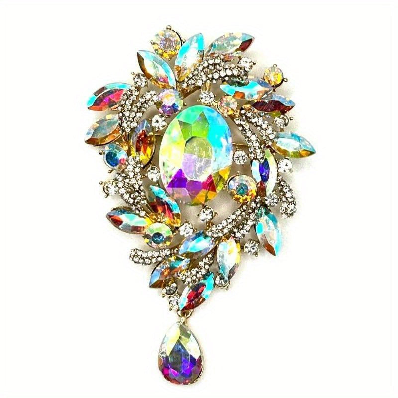 Винтажная стеклянная брошь с ринestones из сплава, элегантный цветочный гем для пальто, изысканная брошь в форме капли воды