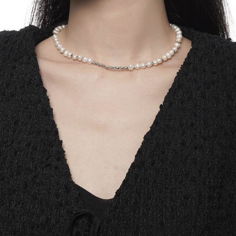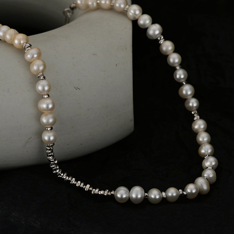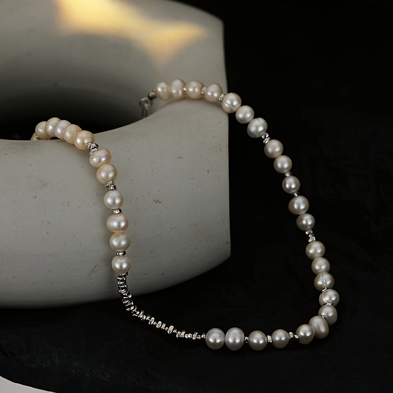 Винтажное ожерелье-ошейник с элегантными пресноводными жемчугами - 925 стерлинговое серебро, идеально подходит для повседневной носки и музыкальных фестивалей