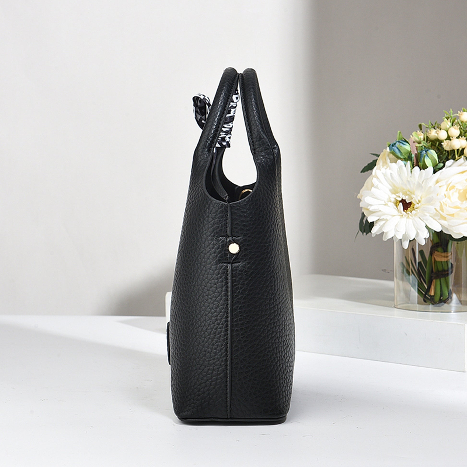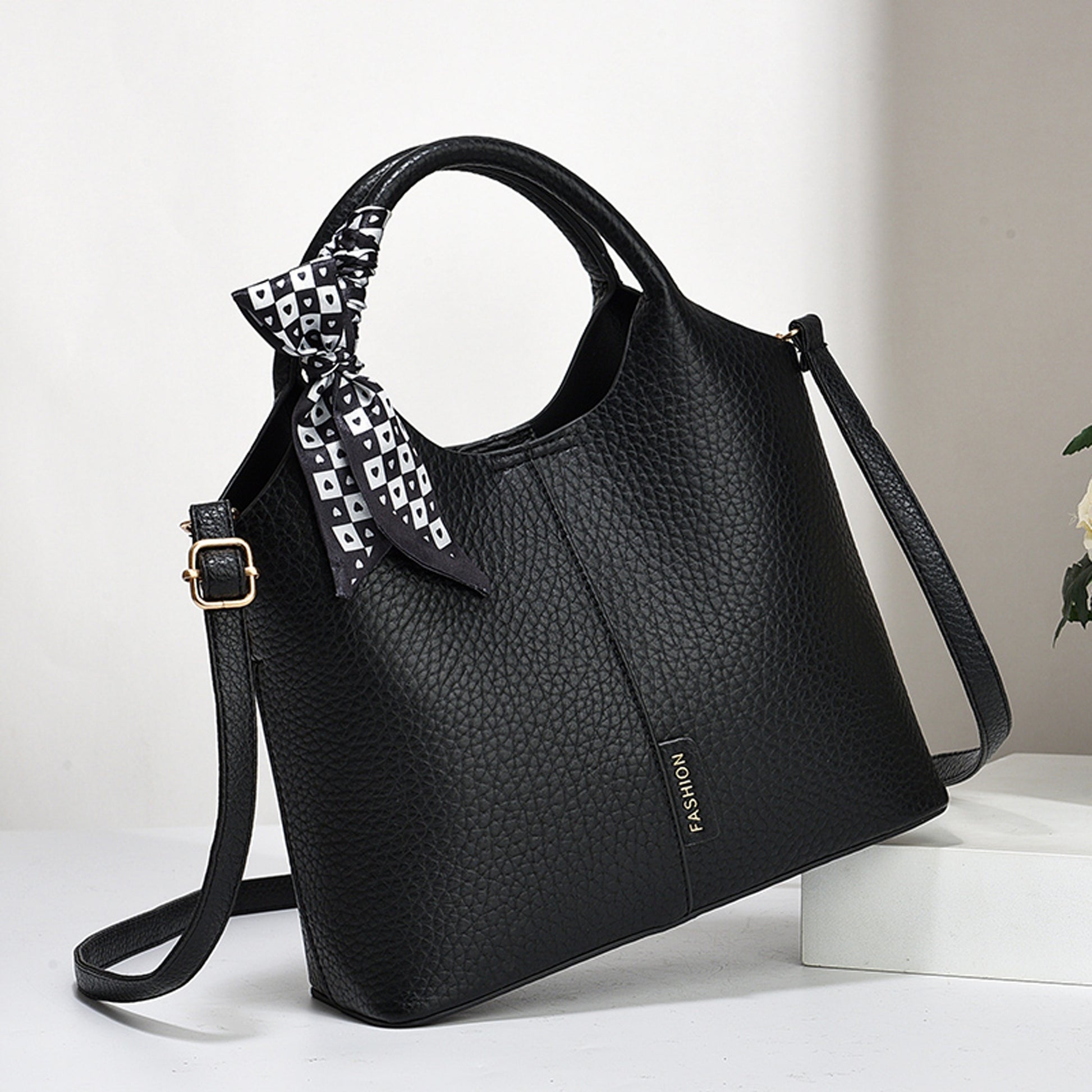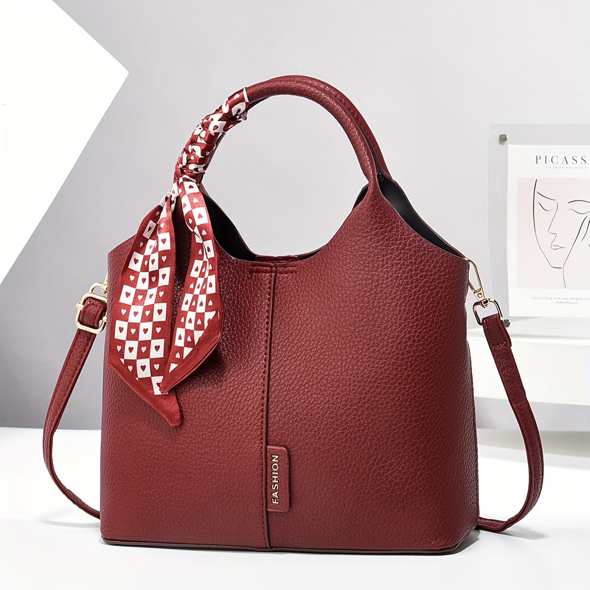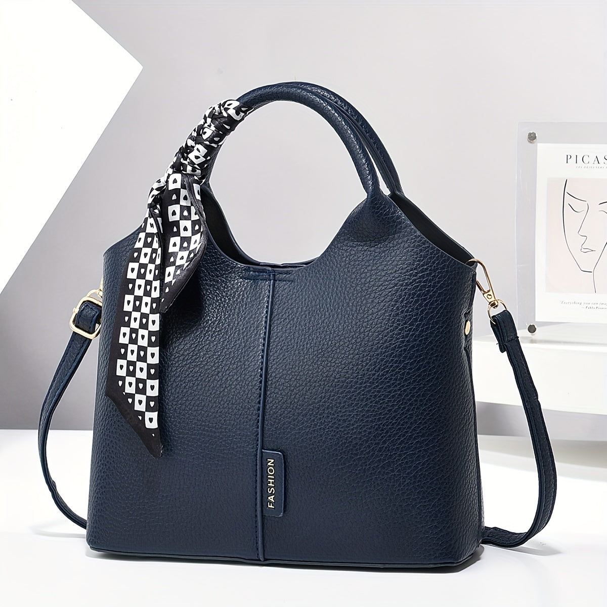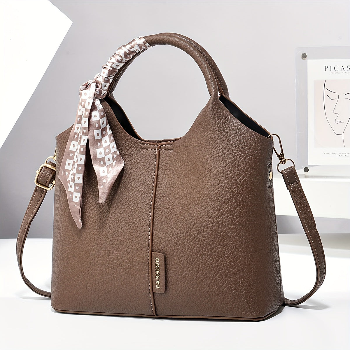 Винтажная сумка-ведро со шарфом, большая вместимость, сумка через плечо, регулируемый ремень, застежка на молнии, складная и без подкладки с окрашенными краями, подходит для бизнеса, свиданий и путешествий.