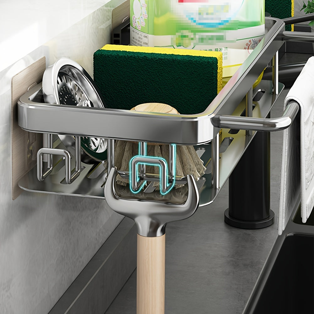 Настенная кухонная полка с встроенной сушилкой для посуды и экономичным дизайном, без необходимости сверлить отверстия. Идеально подходит для хранения кухонных полотенец и других аксессуаров. Отличный многофункциональный органайзер для дома.