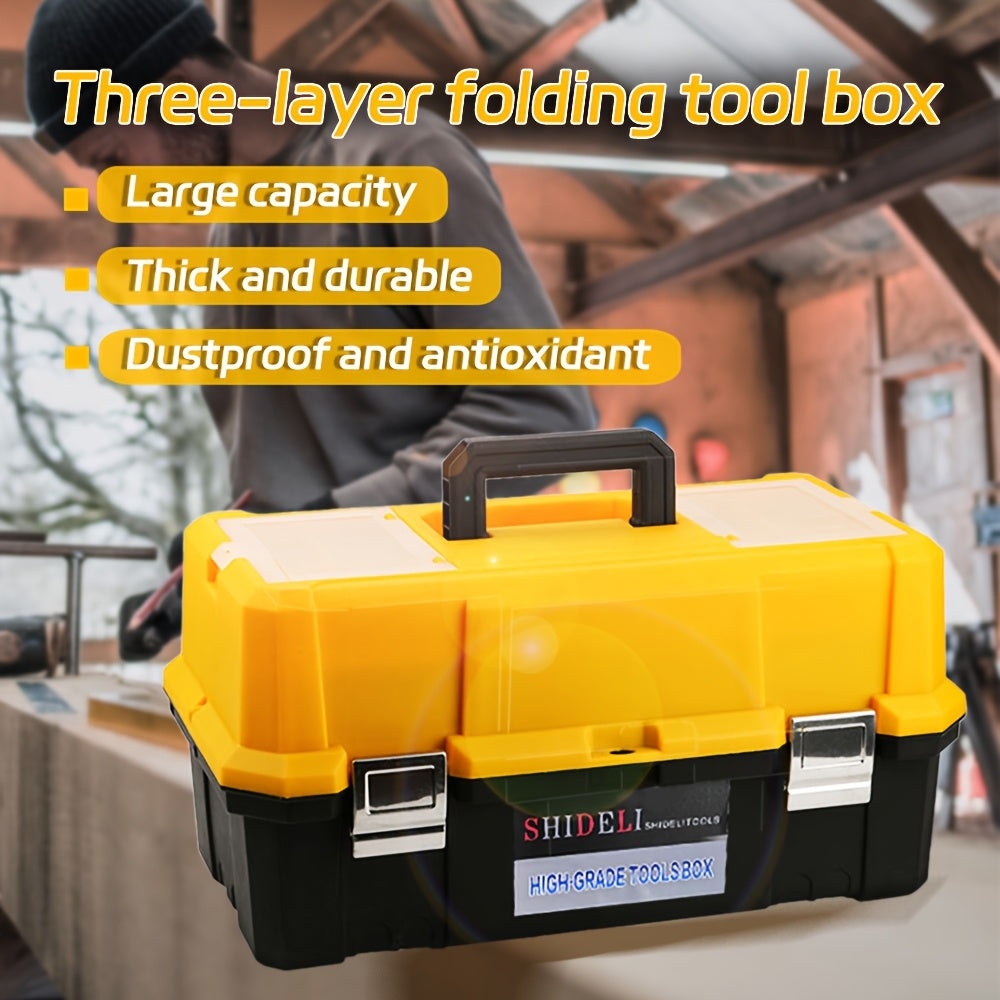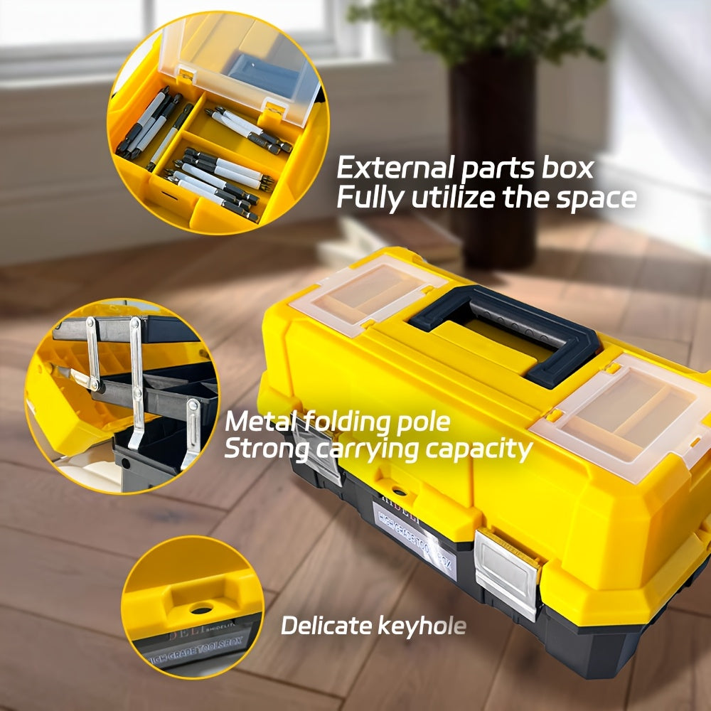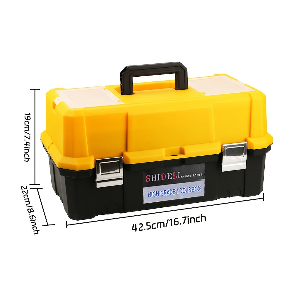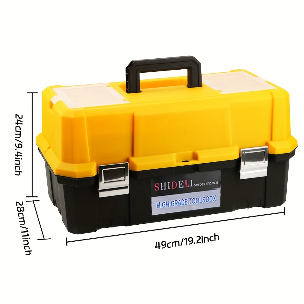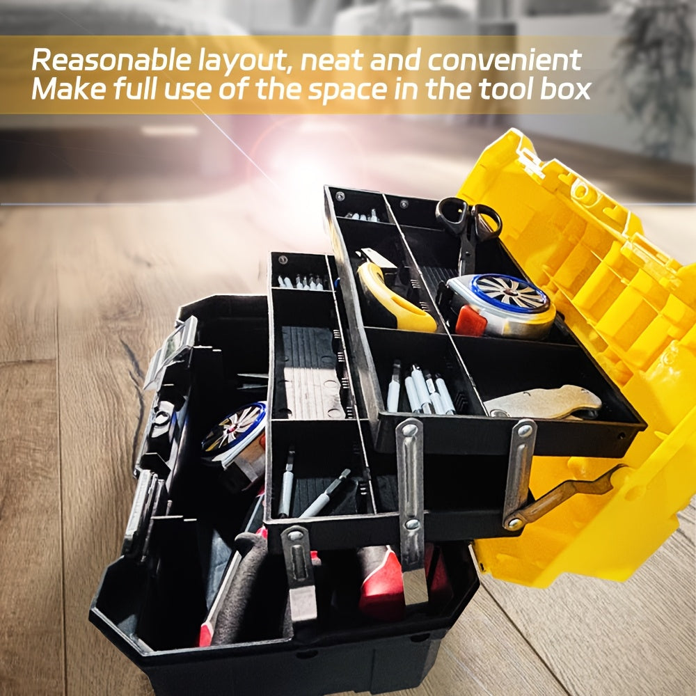 Водонепроницаемый пластиковый органайзер для инструментов на 3 уровня, 18/21 дюйм - Портативный контейнер для хранения для дома, черный/желтый.