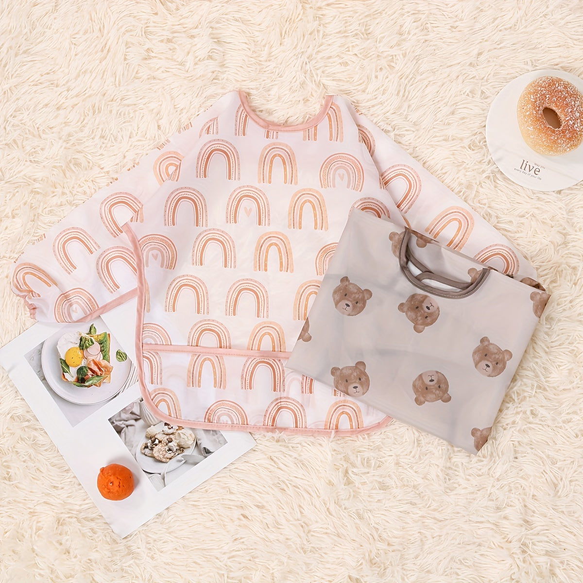 Водонепроницаемые бибы с длинными рукавами для детей от 0 до 3 лет, легко чистятся и не требуют стирки.