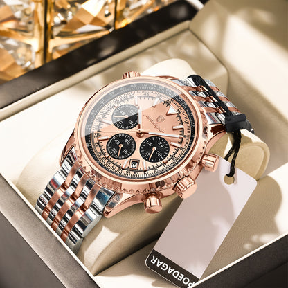 Мужские водонепроницаемые хронографические часы из нержавеющей стали с календарём и светящимся циферблатом