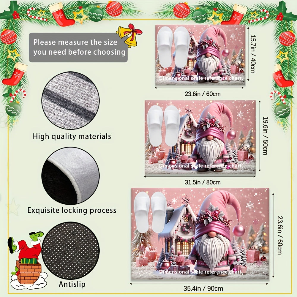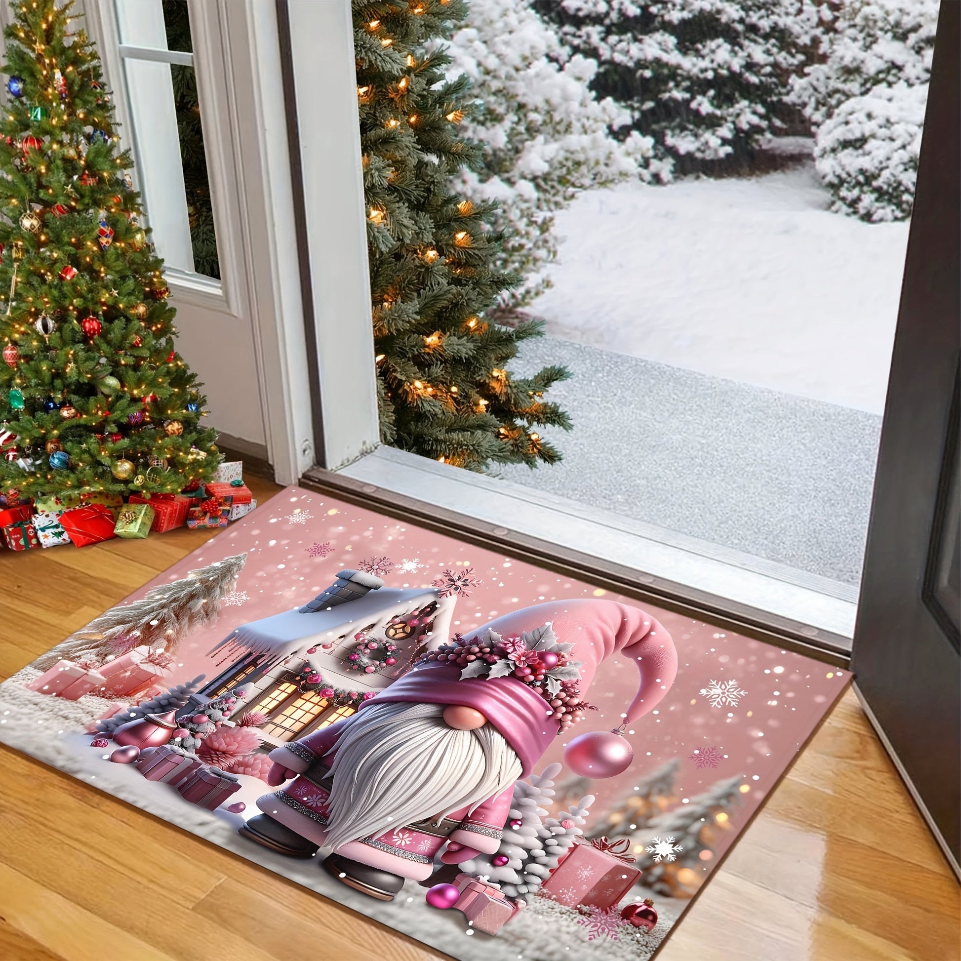 Розовая рождественская гномовая коврик 6 мм Нескользящий Машинная стирка Украшение на праздник