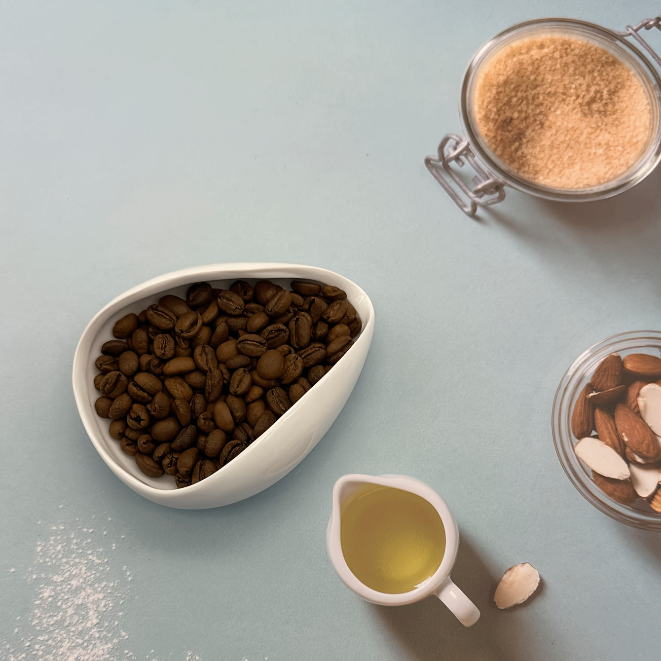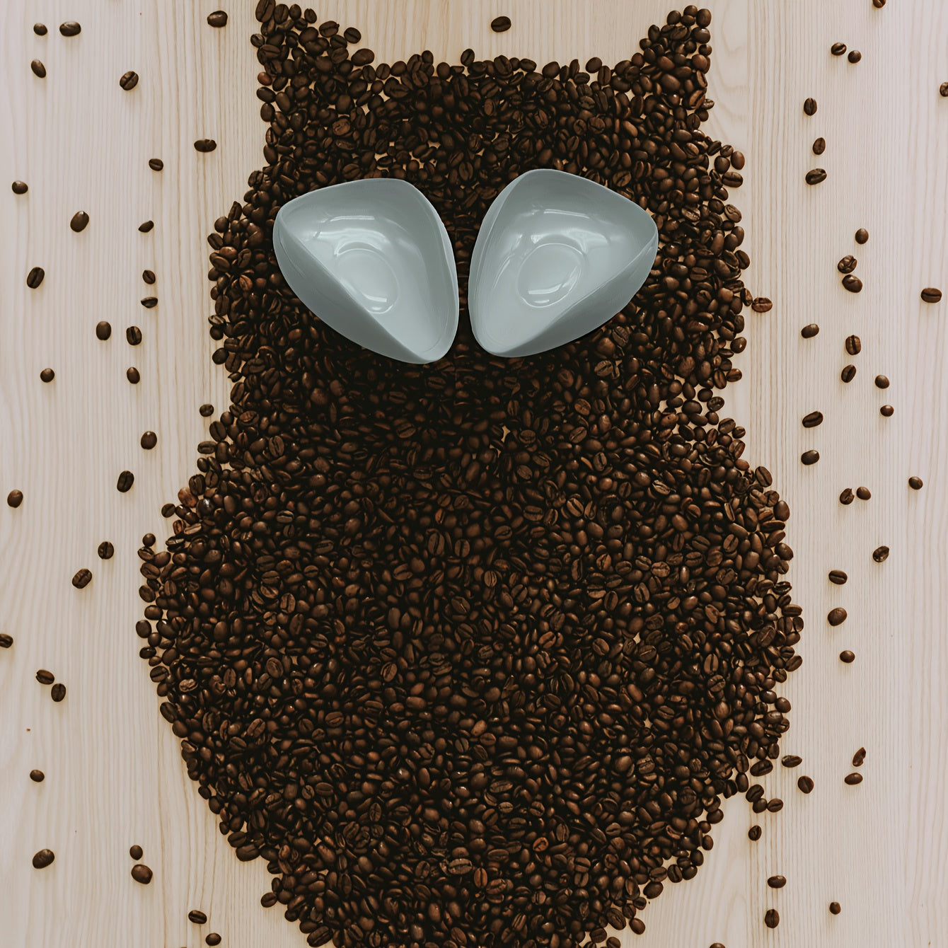 Набор подставок для мерных чашек с белыми кофейными зернами, бутылкой для воды и весовой тарелкой