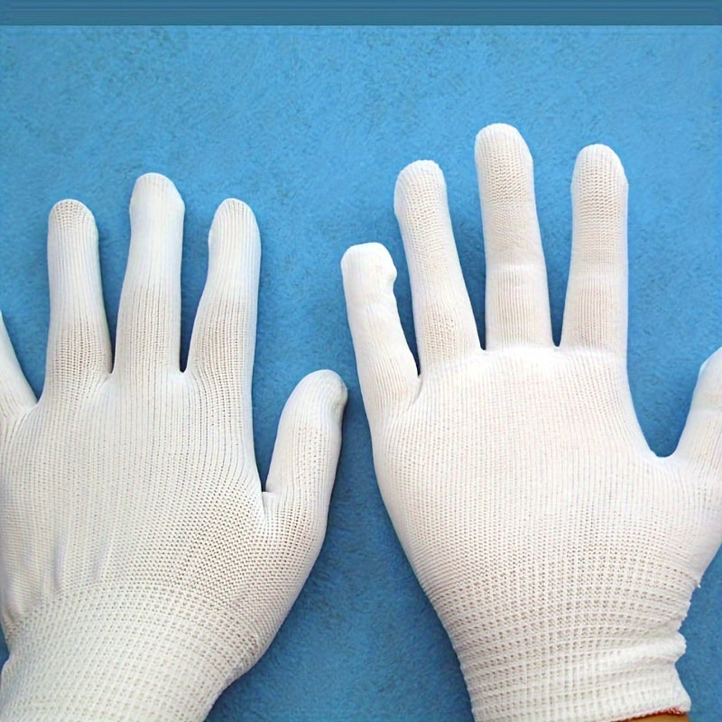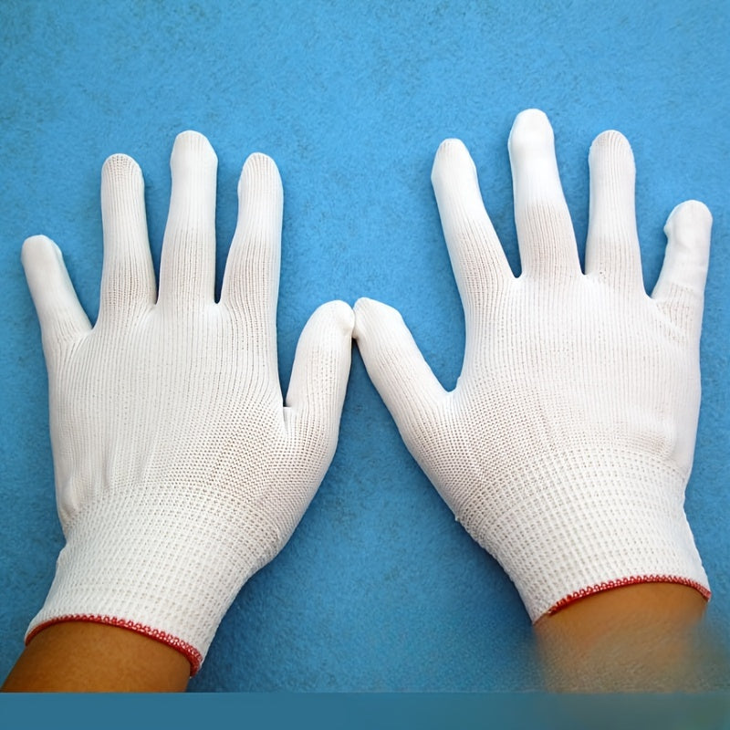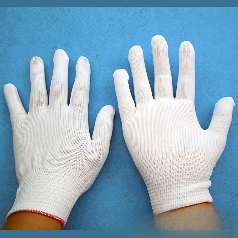 Белые ультратонкие нейлоновые вязаные перчатки - набор из 12 штук - идеально подходят для протирки пыли, точной работы и упаковки - идеально для домашней уборки