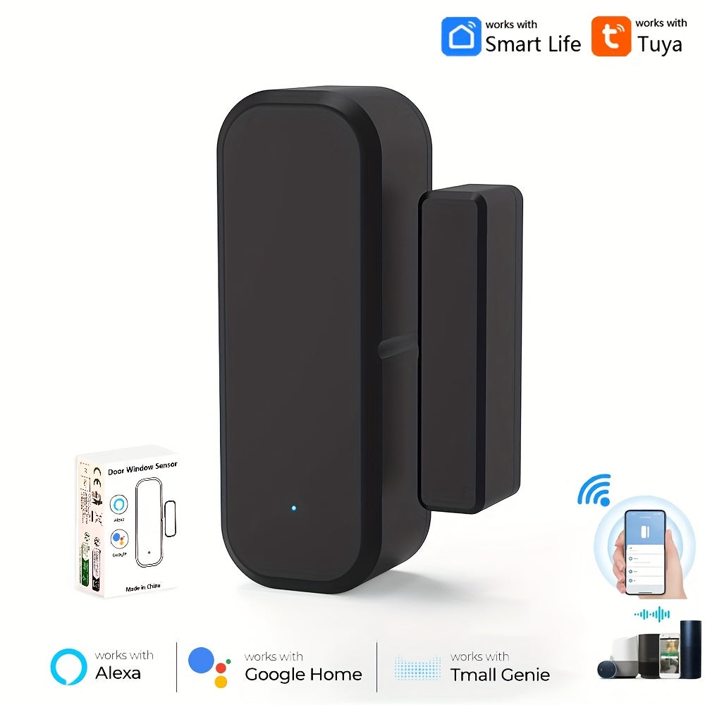 Система домашней безопасности с поддержкой WiFi, магнитными датчиками для дверей/окон, голосовым управлением, удаленным доступом через приложение, настраиваемыми режимами и совместимостью с Alexa и Google Assistant.