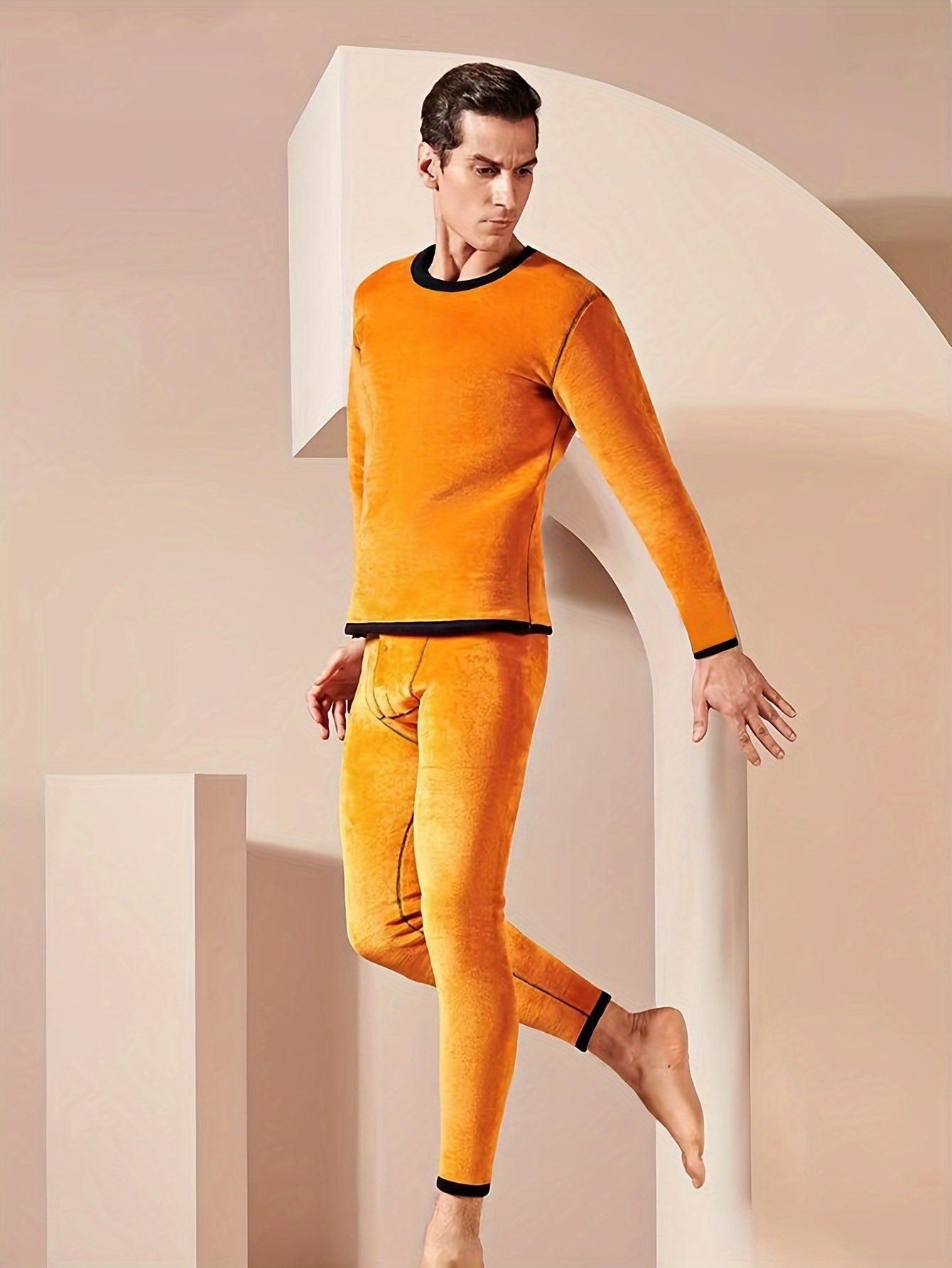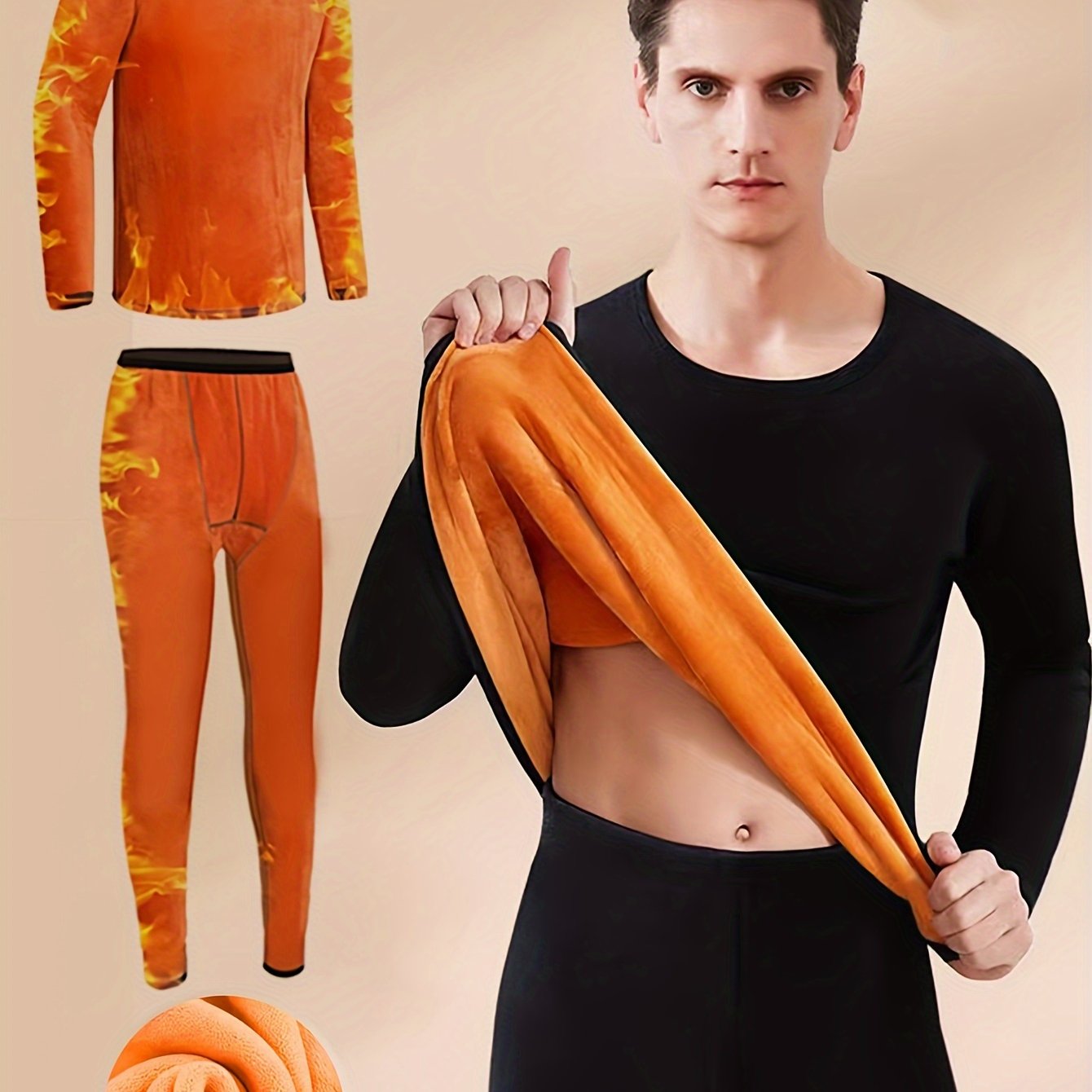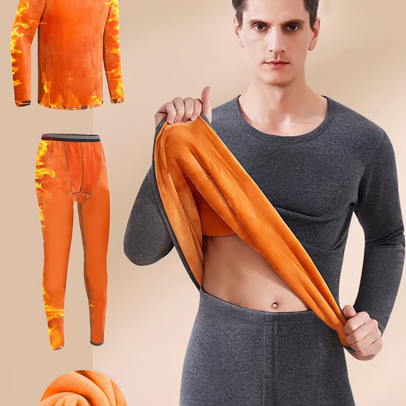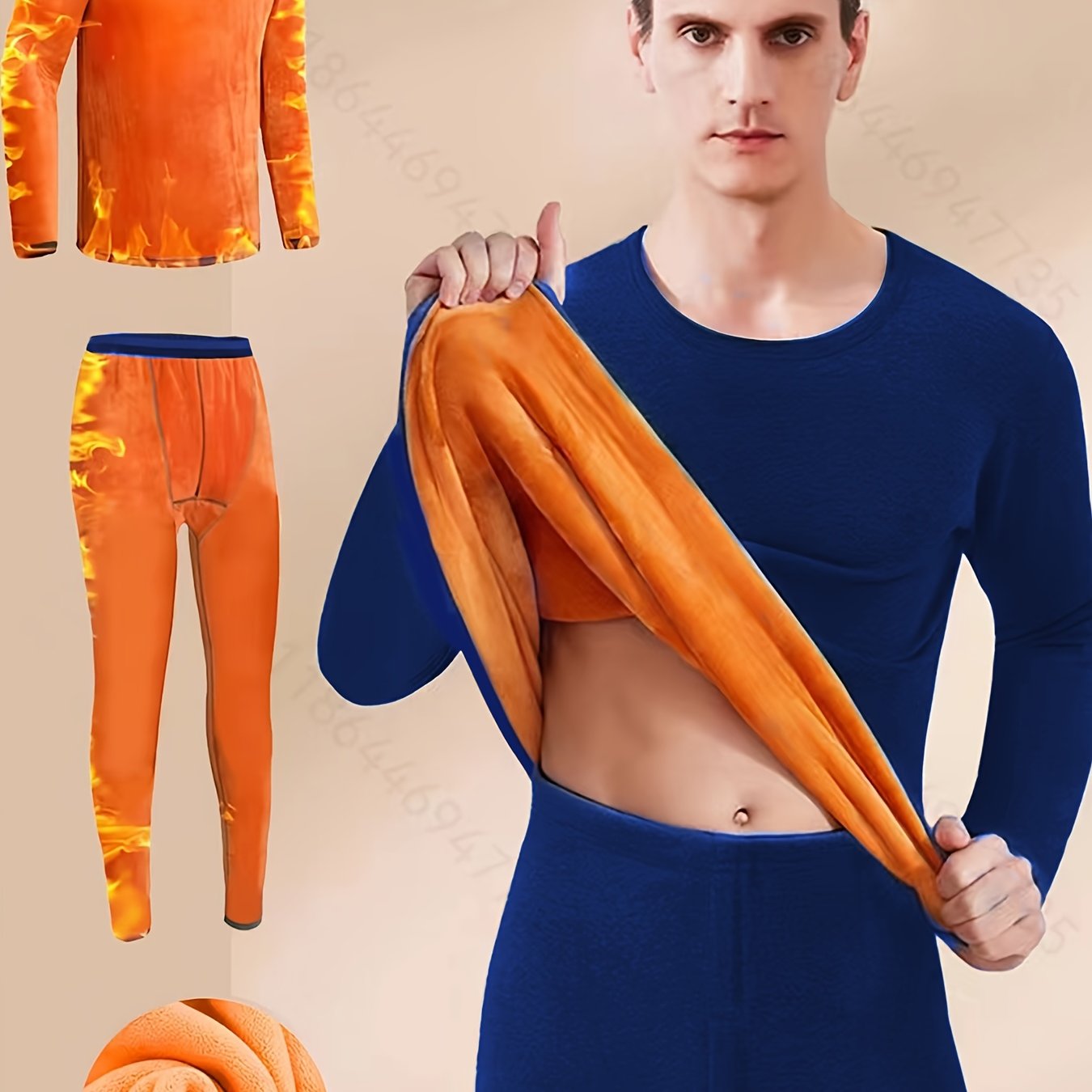 Мужской зимний термальный комплект нижнего белья из флиса, длинный рукав и штаны для среднего возраста и пожилых