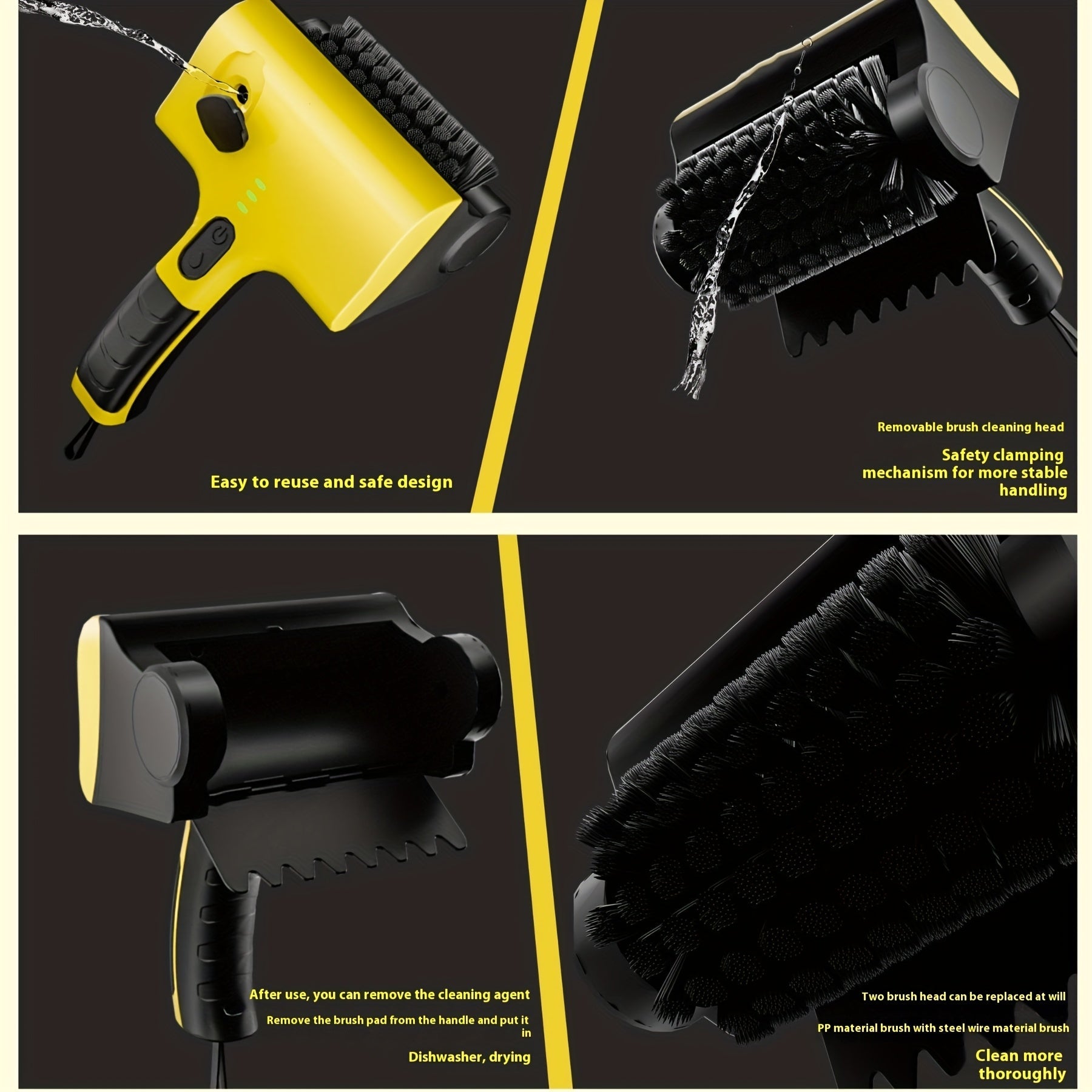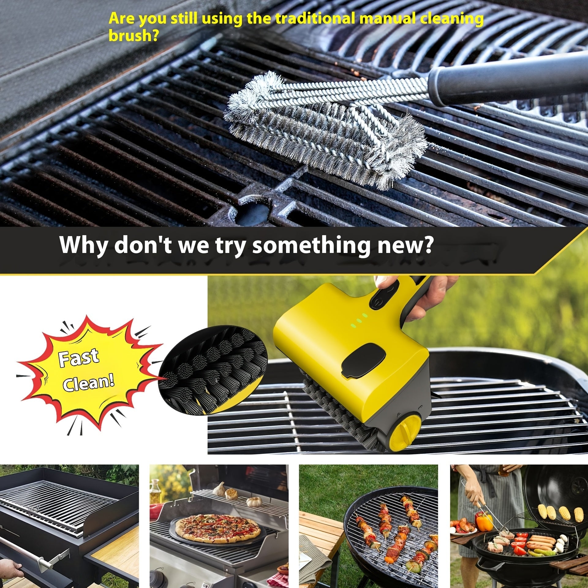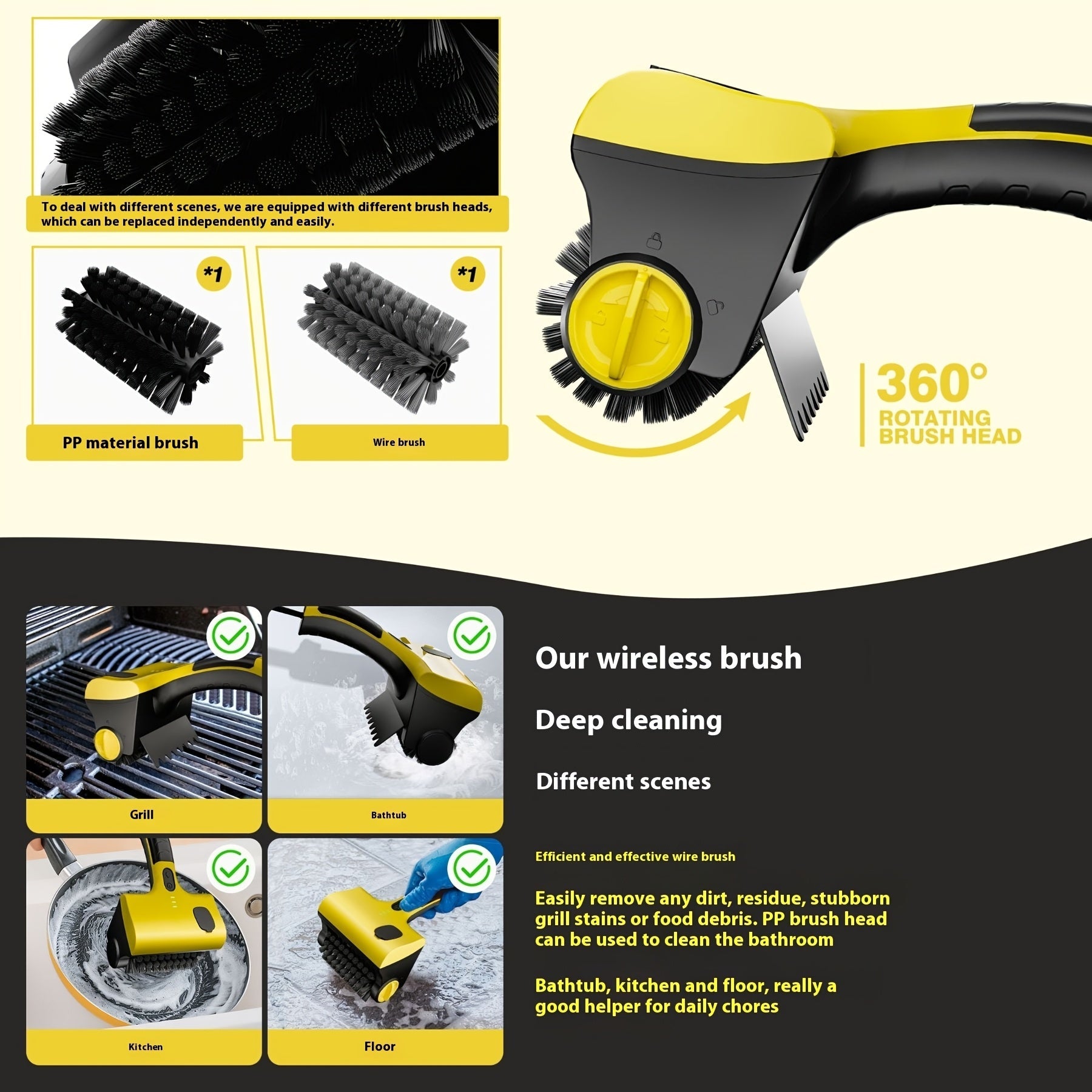 Беспроводная электрическая щетка для чистки гриля с заменяемой щеткой, подходит для чистки плитки на кухне.