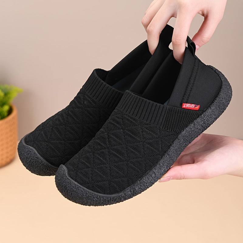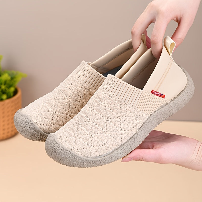 Women Breathable Quilted Fabric Loafers Elastic Sole Casual Slip-On Shoes