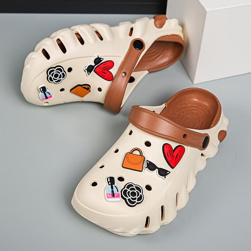 Женские сабо из EVA с сердечками и цветочными акцентами, дышащие, всесезонные, белые