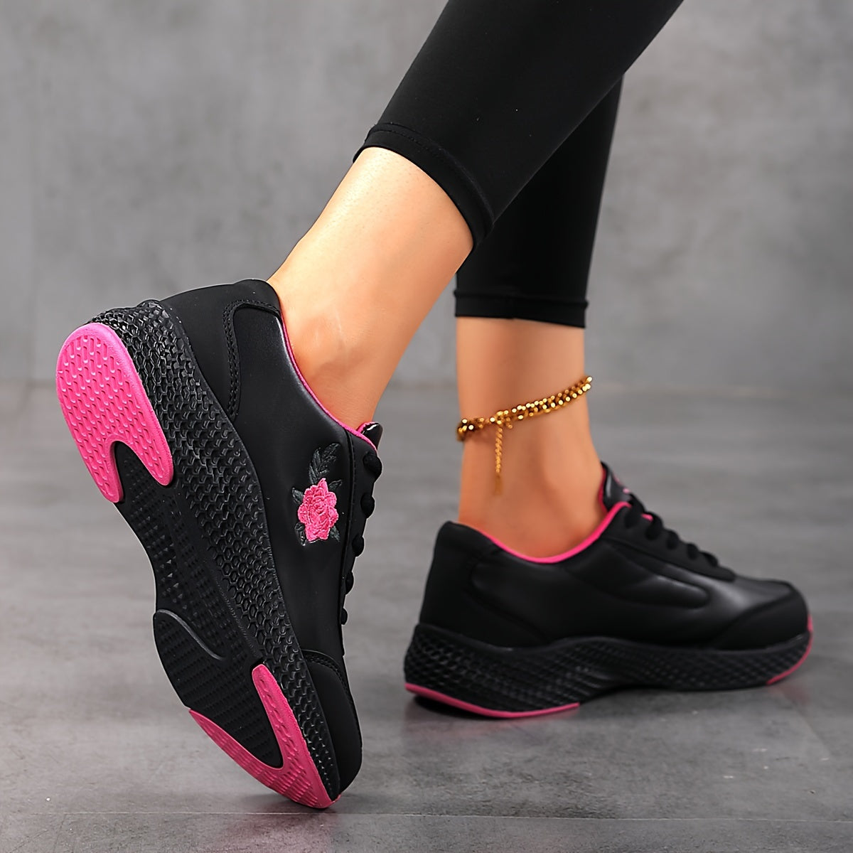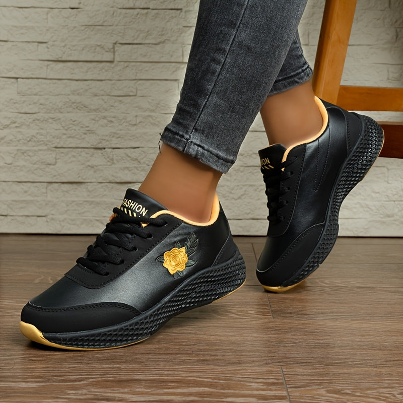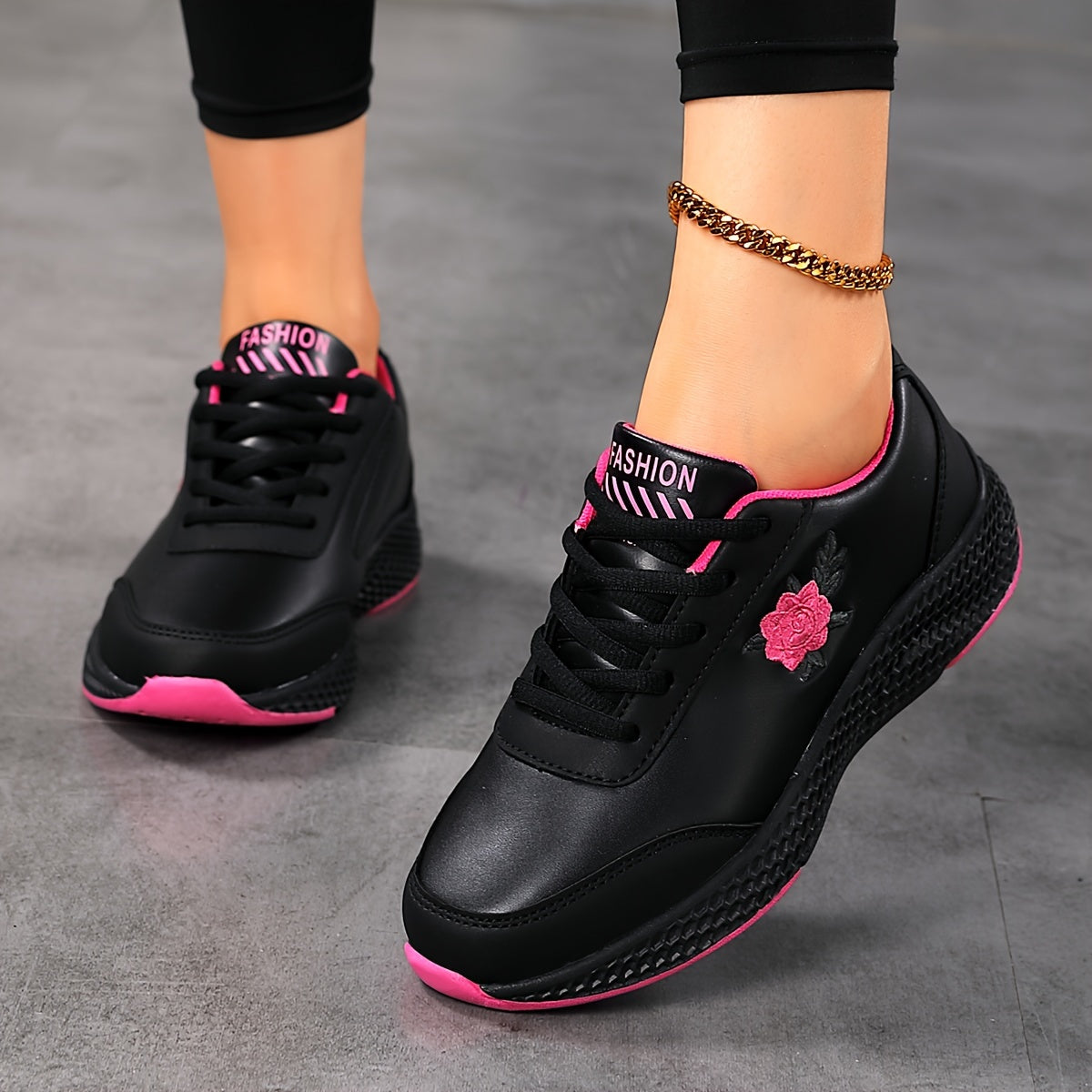 Женские плоские кроссовки дышащие на шнуровке повседневные обувь для прогулок с цветочным узором