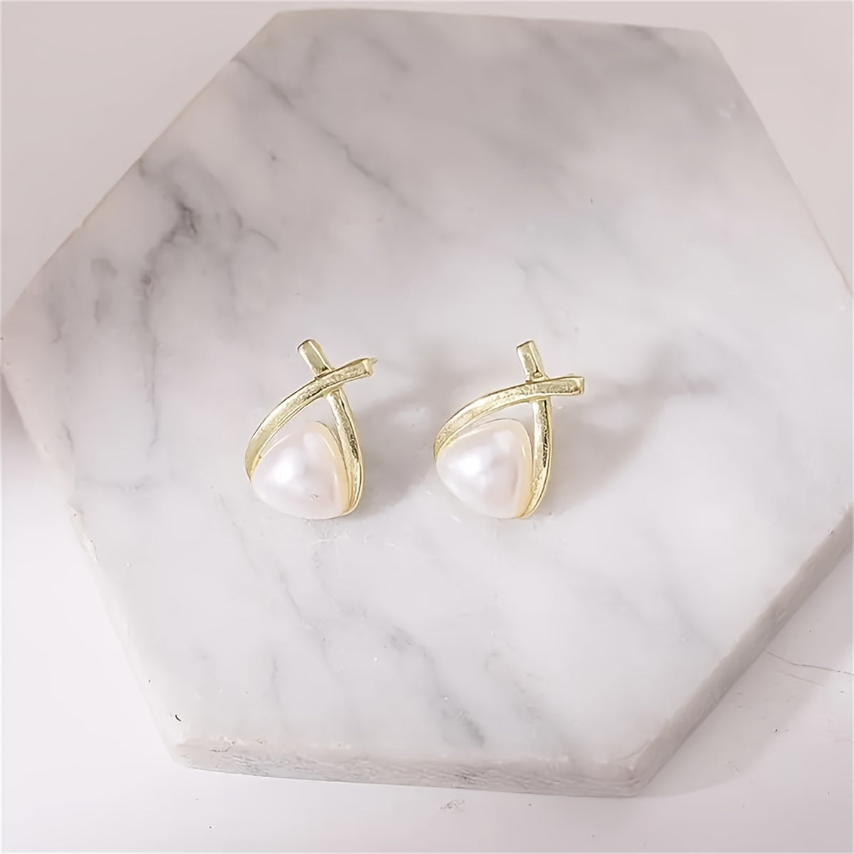 Женские серьги-гвоздики с жемчугом из сплава золотого оттенка повседневные украшения