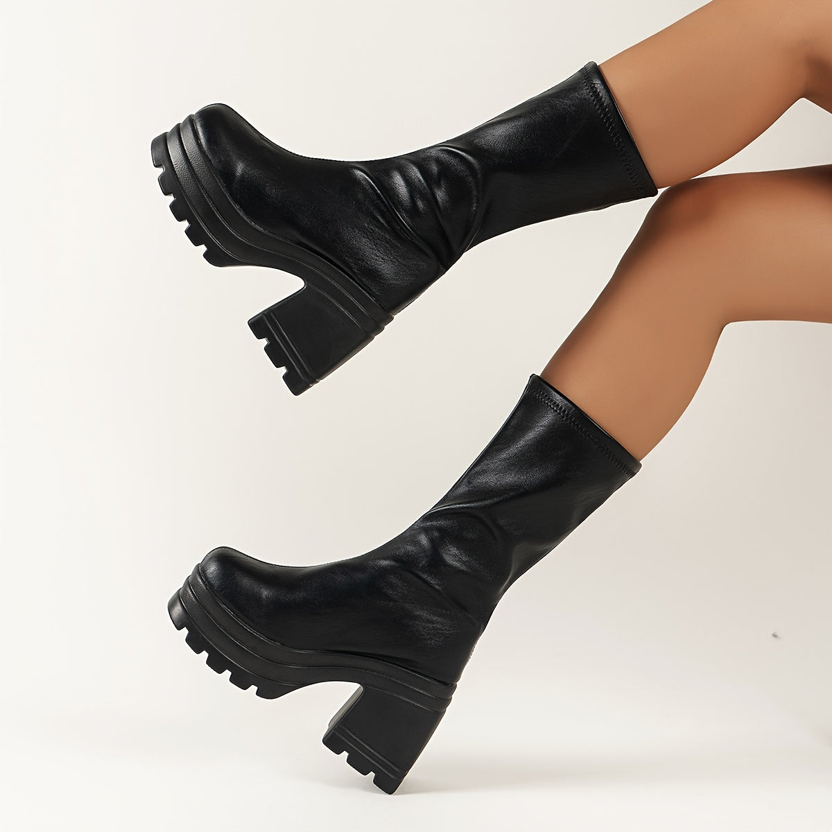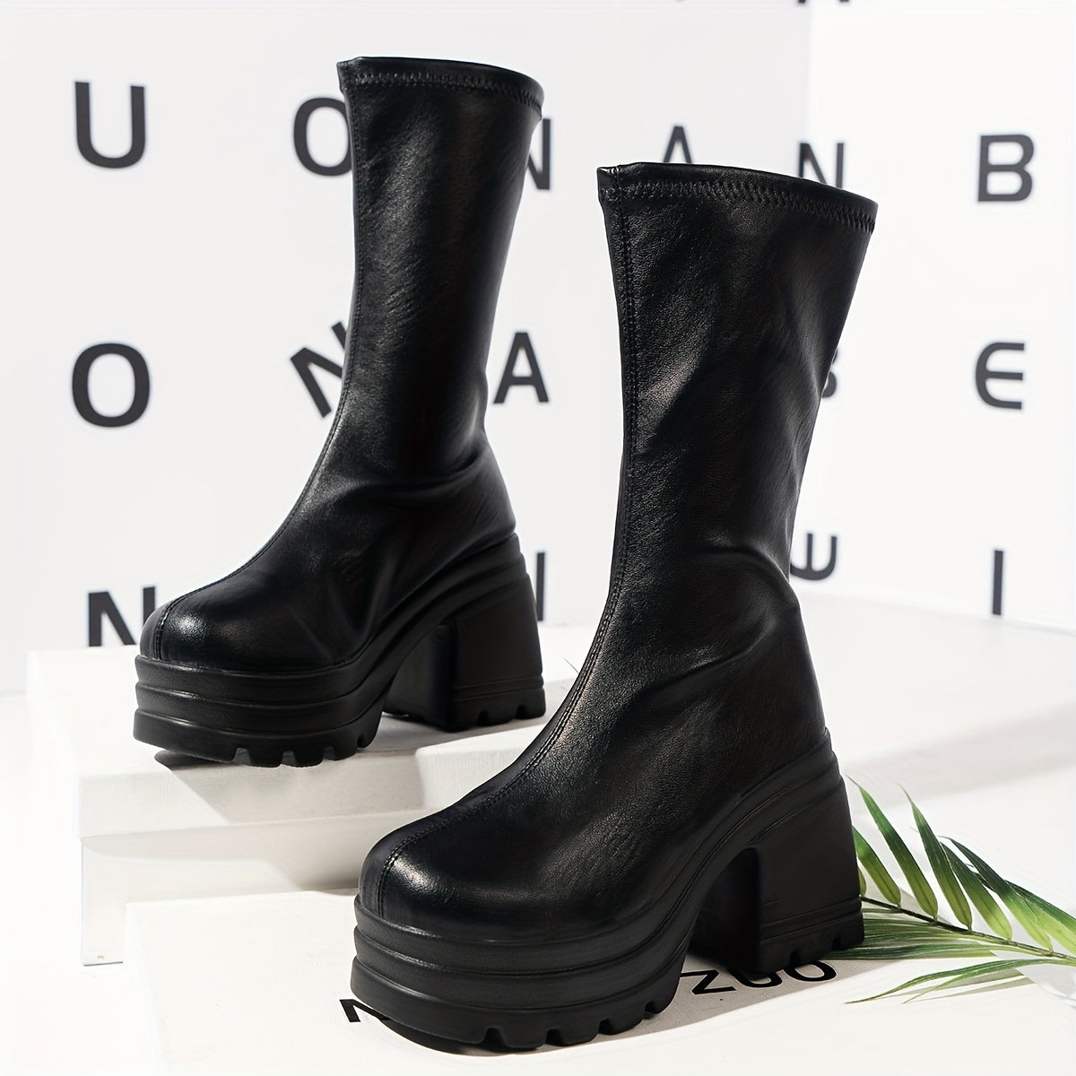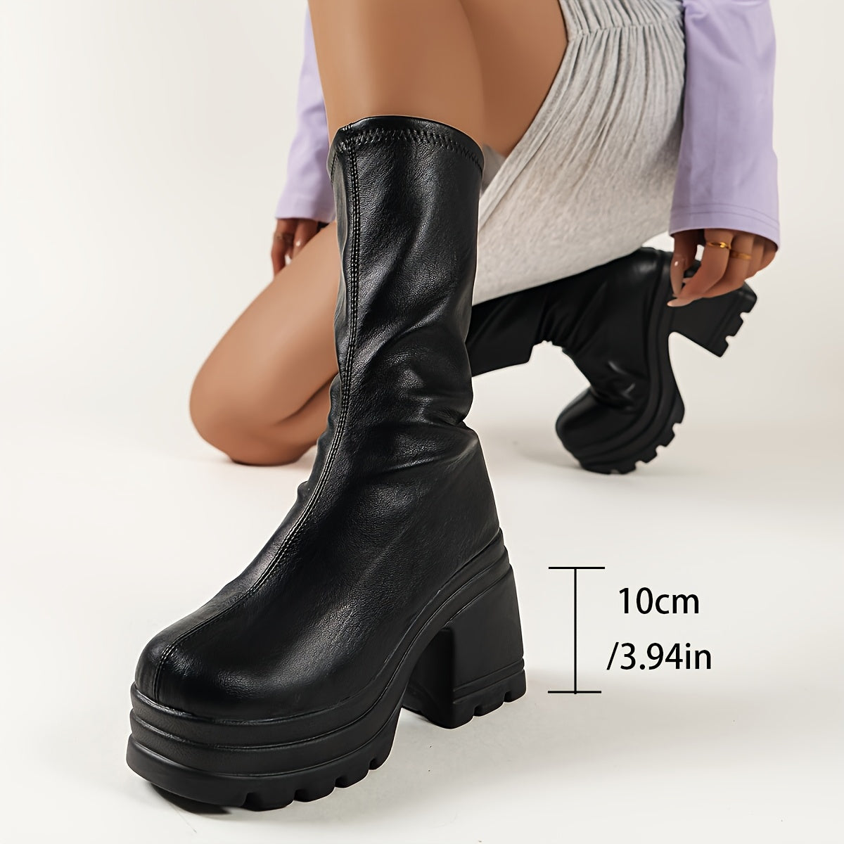 Женские обувь больших размеров черные ботинки на круглой носке с массивным каблуком для осени/зимы