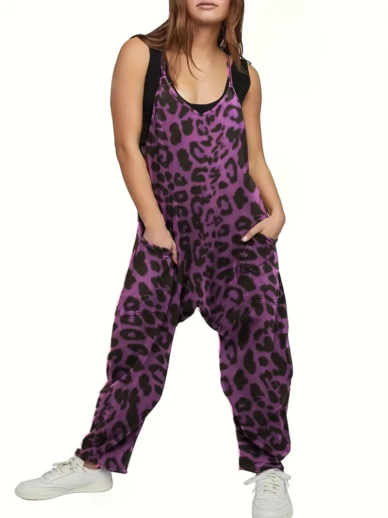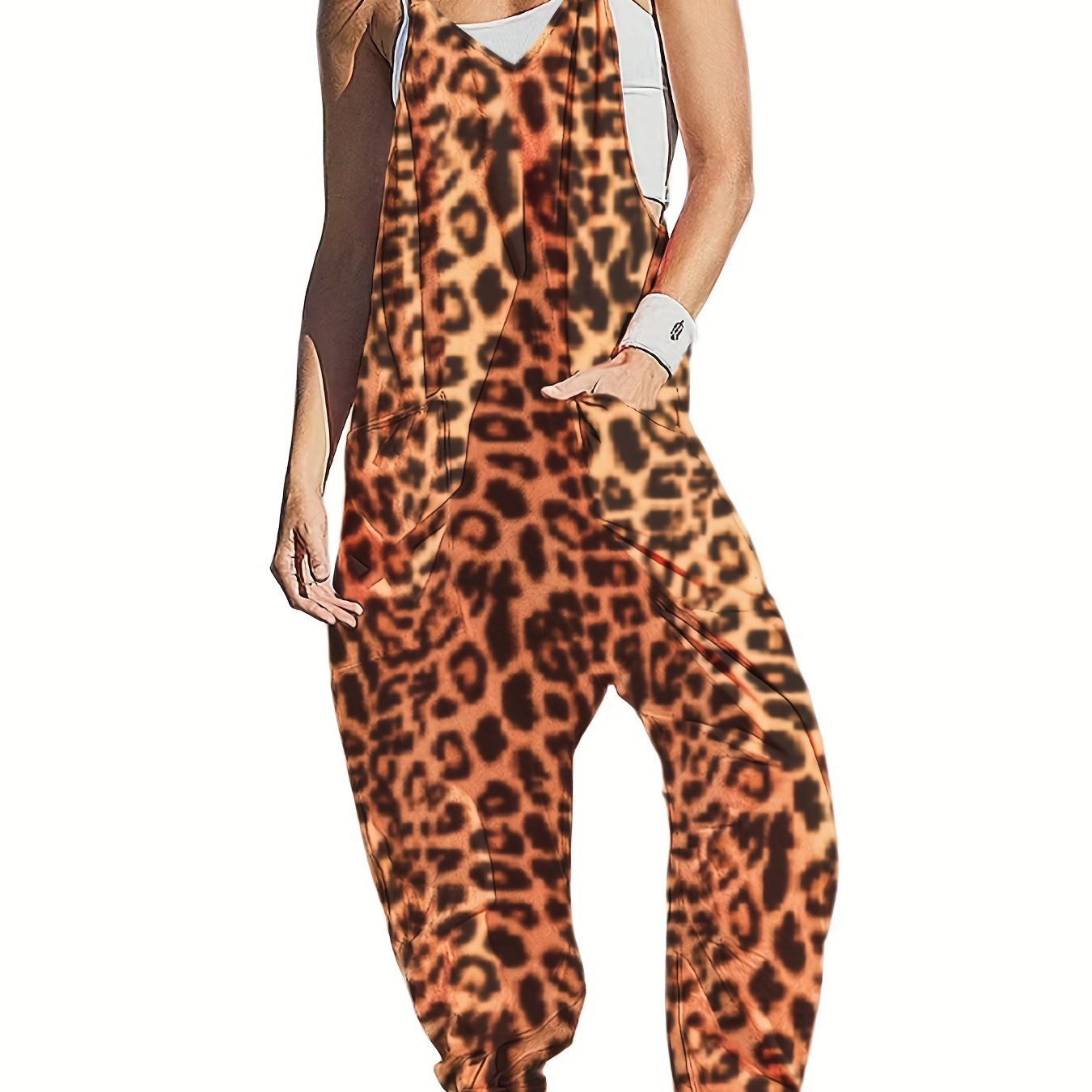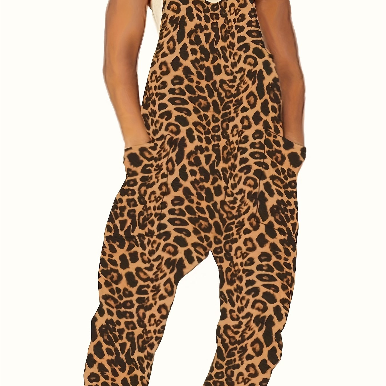 Женский летний повседневный комбинезон без рукавов большого размера с леопардовым принтом