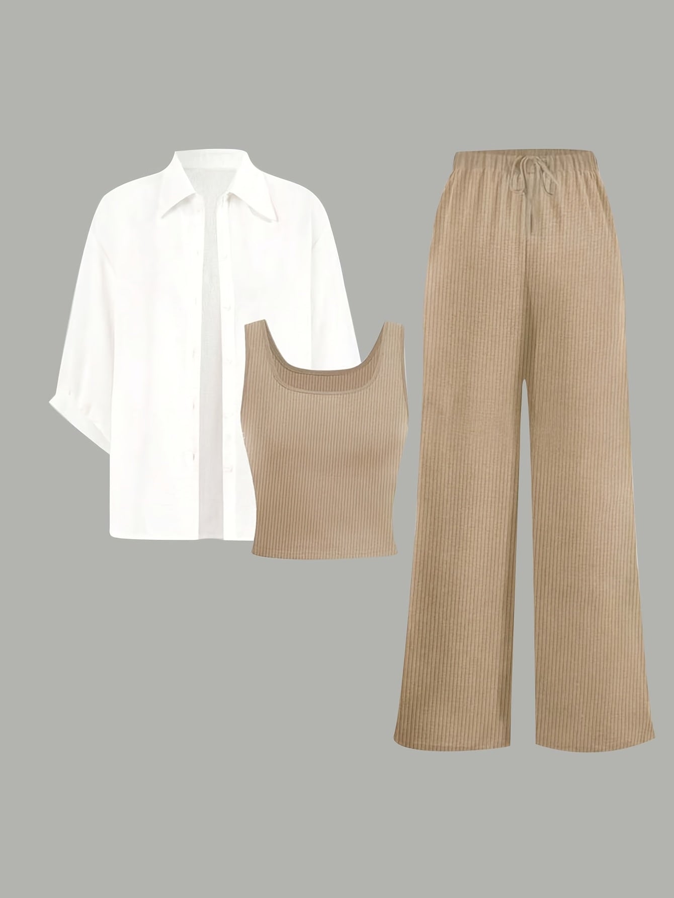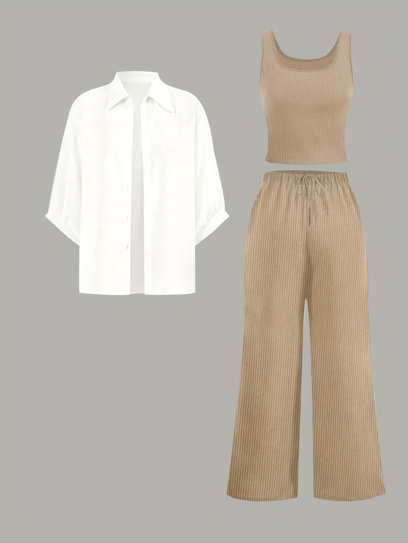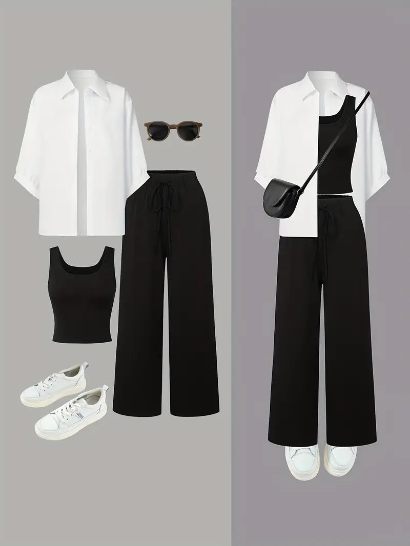 Женский комплект из 3 предметов: рубашка, топ и брюки однотонного цвета