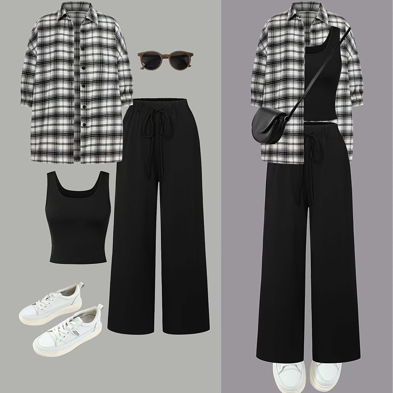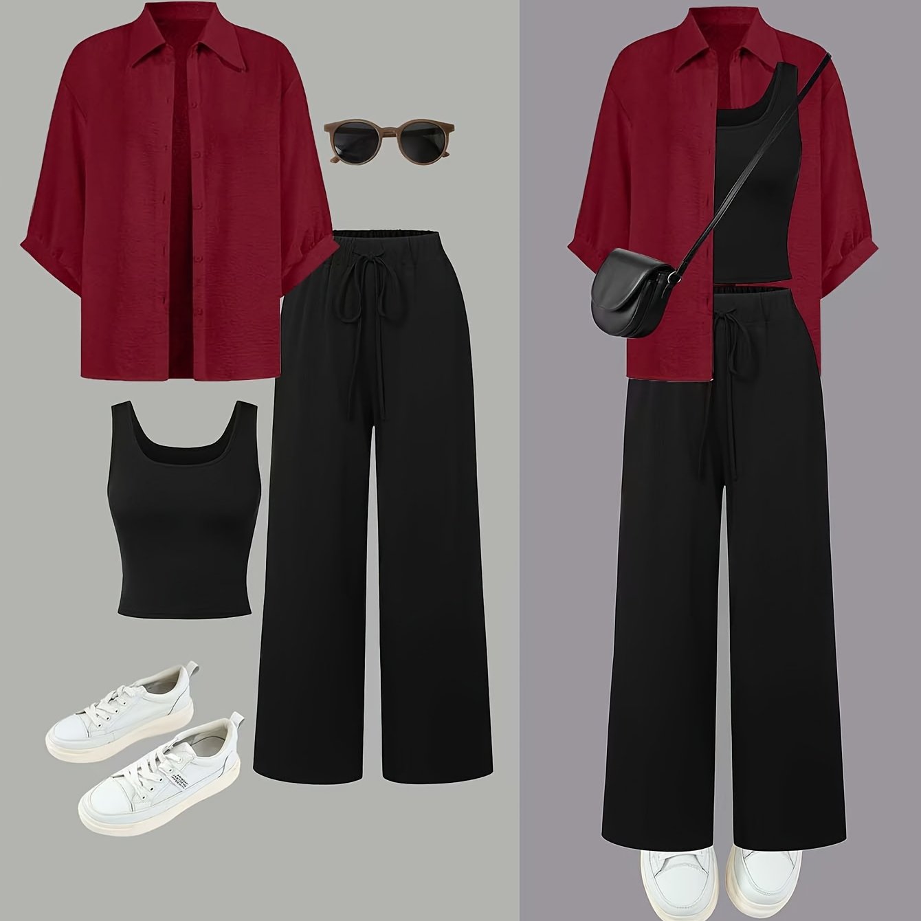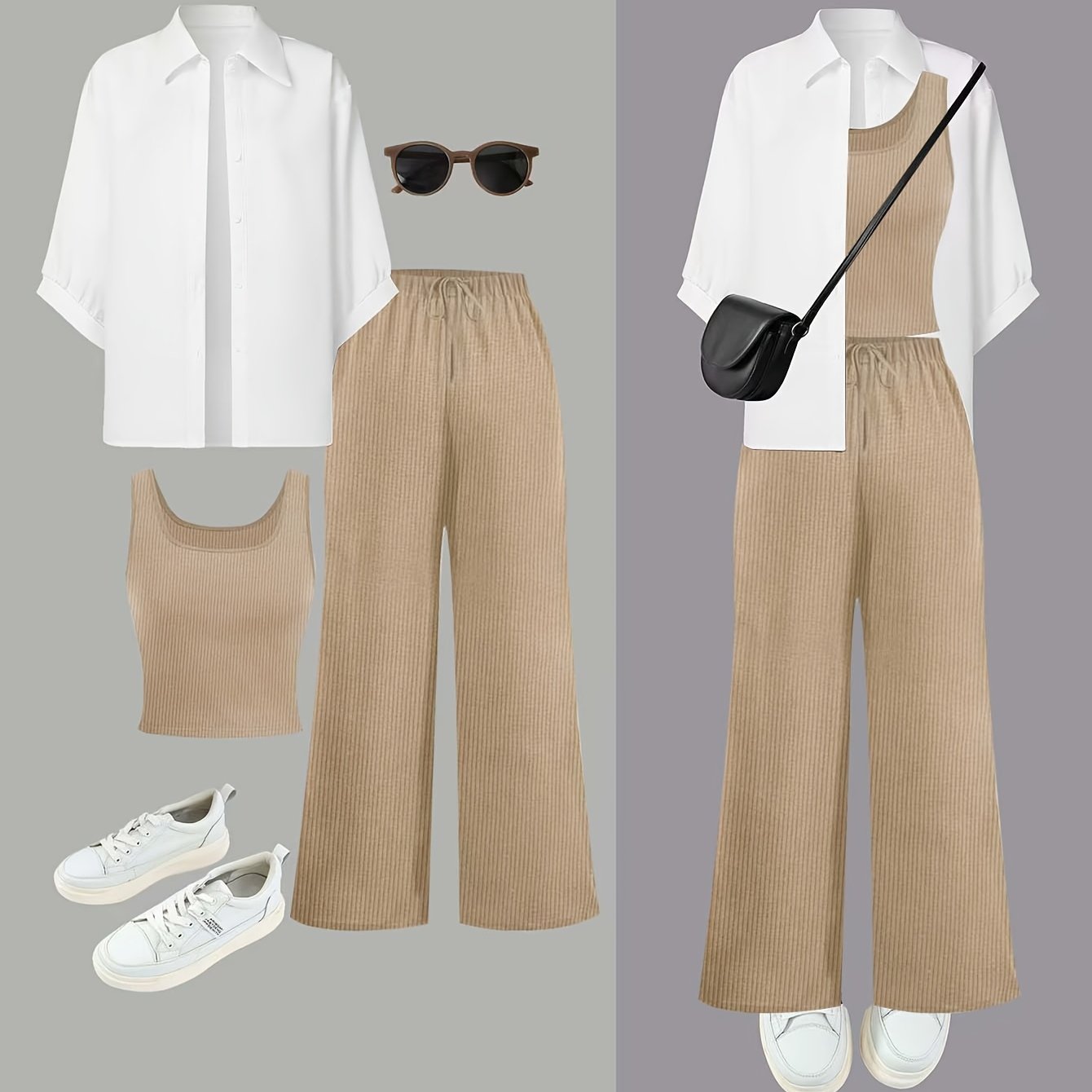 Женский комплект из 3 предметов: рубашка, топ и брюки однотонного цвета