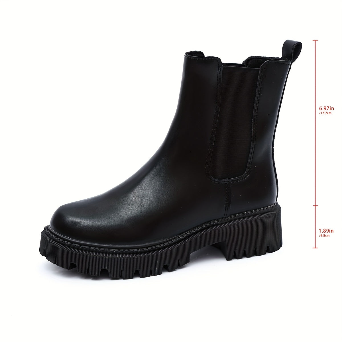 Женские ботинки на щиколотке из синтетики черные платформенные с низким каблуком для всех сезонов