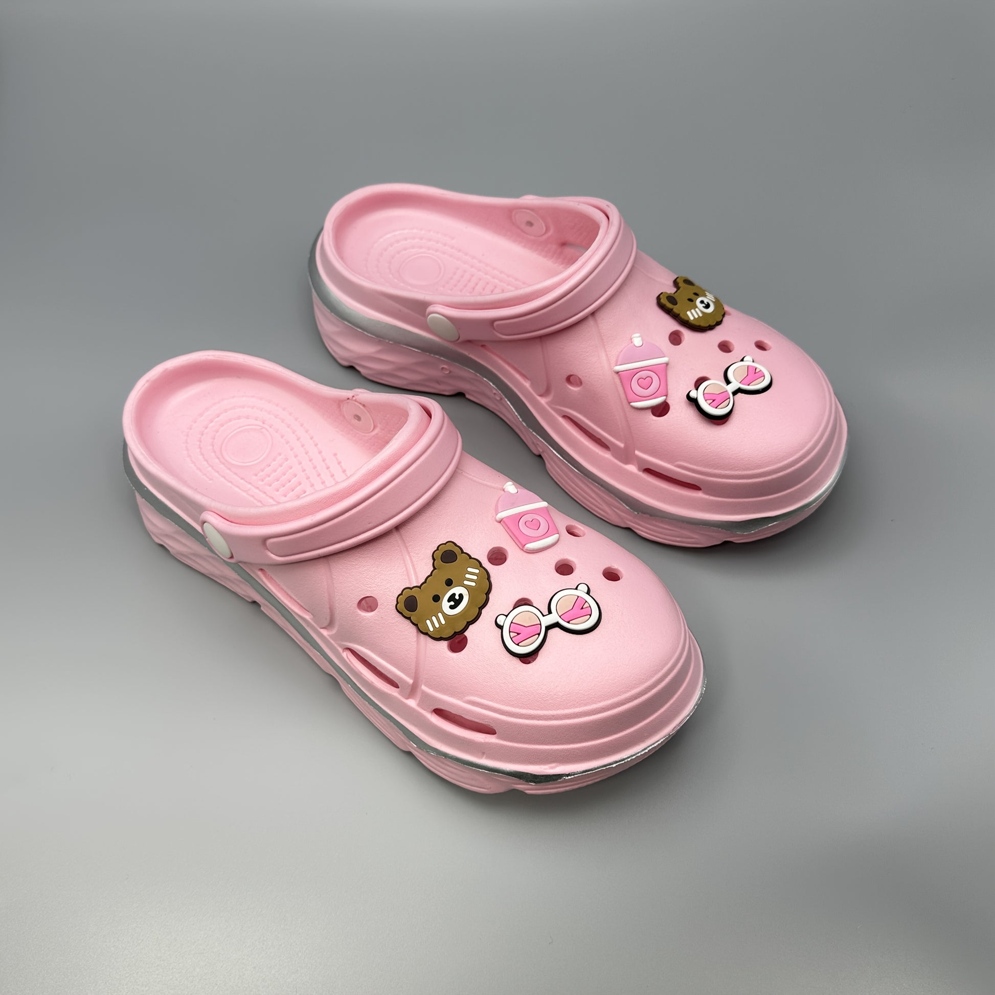 Women's Bear Cartoon Slippers EVA Clogs with Pink Bow Indoor Outdoor