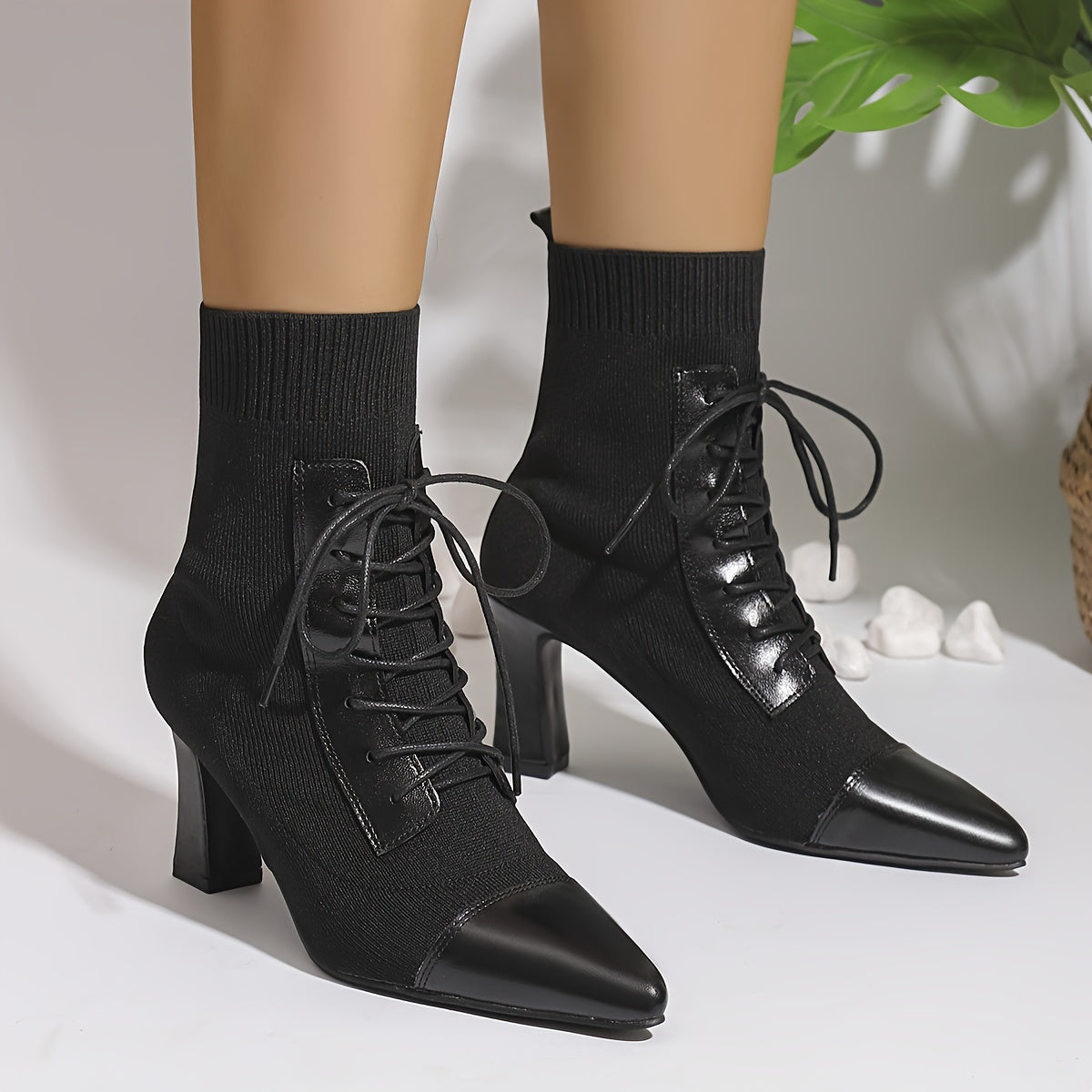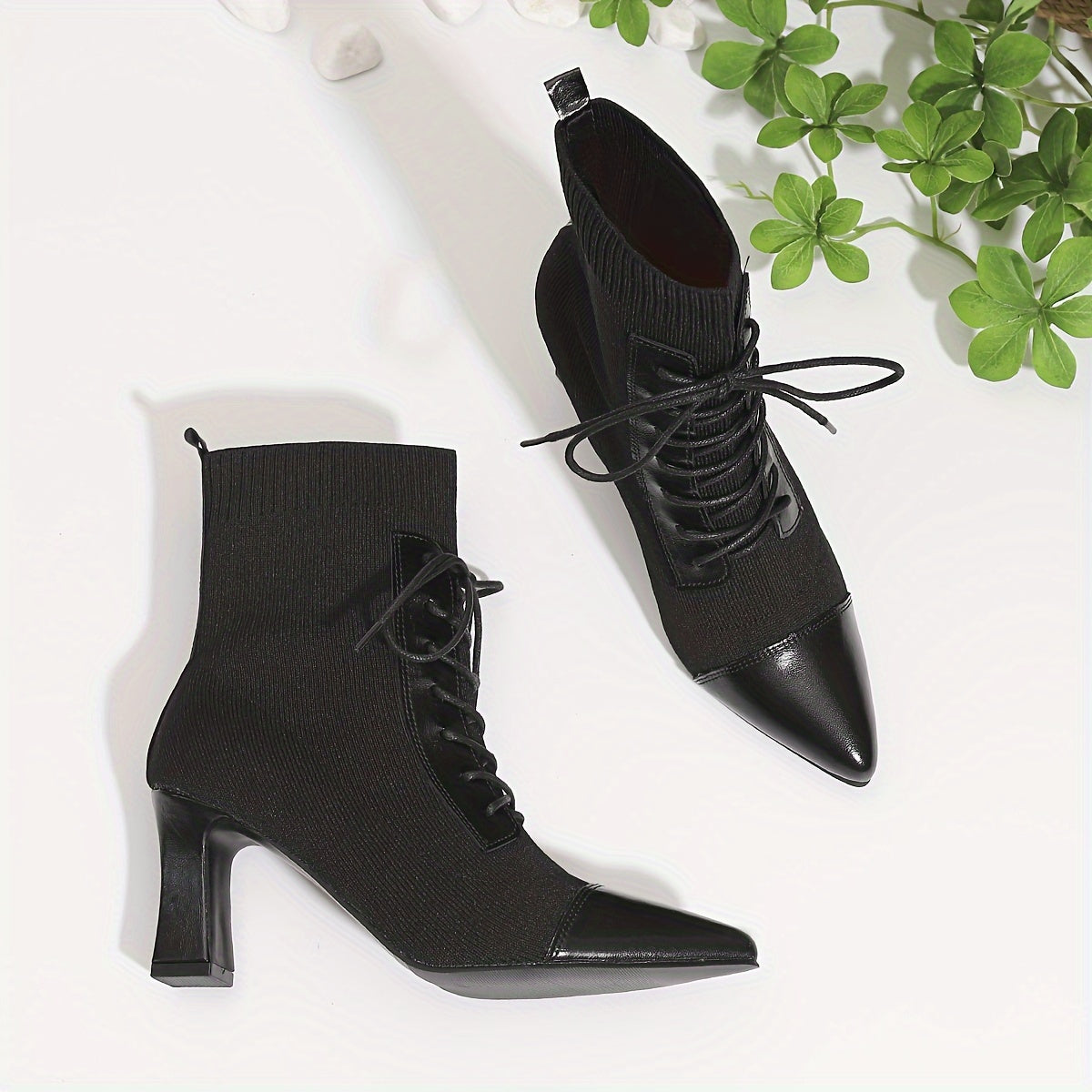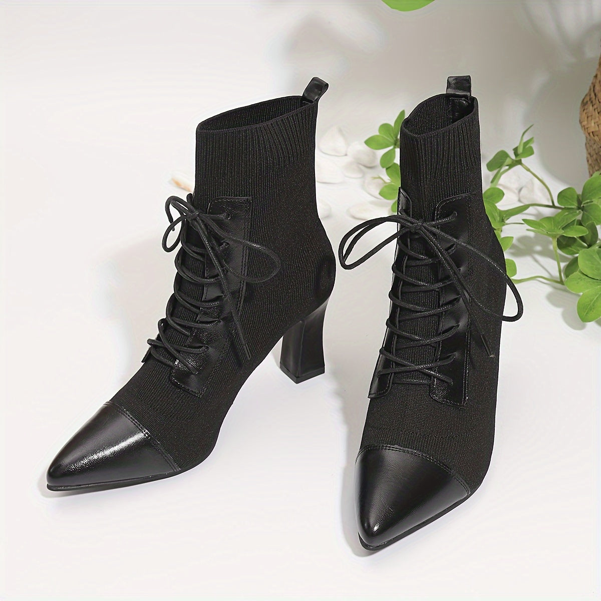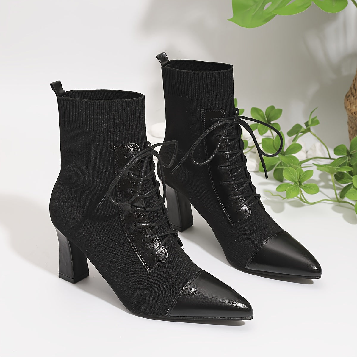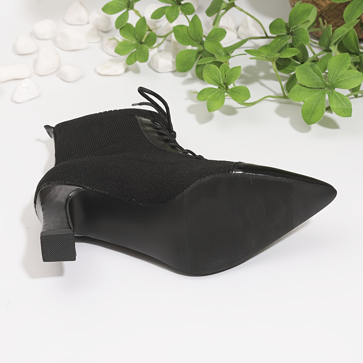 Женские черные ботинки на каблуке с заостренным носком и массивным каблуком для зимы, на slip-on