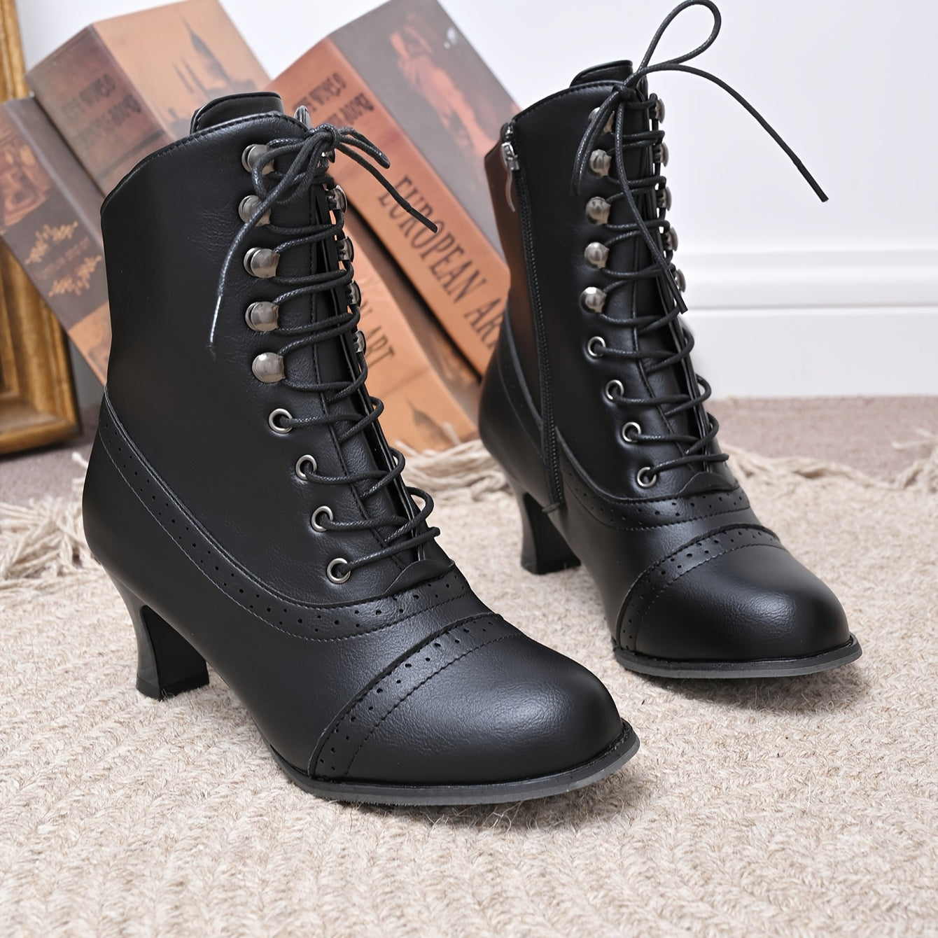 Женские черные синтетические ботинки на каблуке с молнией, броди-деталями