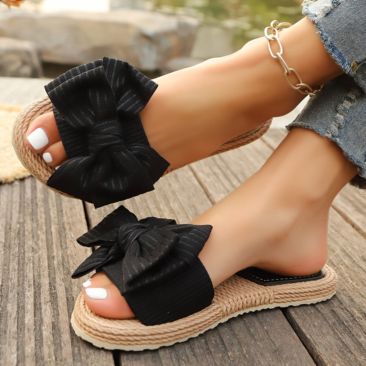 Женские балетки с бантом, открытым носком, летние легкие туфли на slip-on, тканевые, противоскользящие