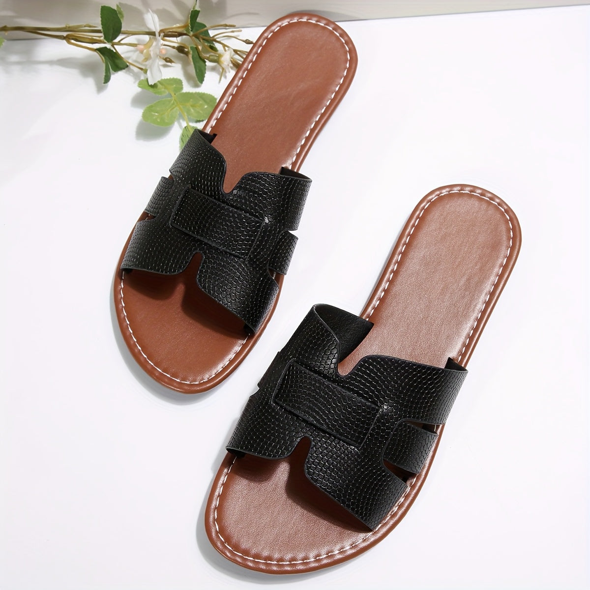 Женские повседневные шлепанцы на плоской подошве из PU с открытым носком, коричневый и белый